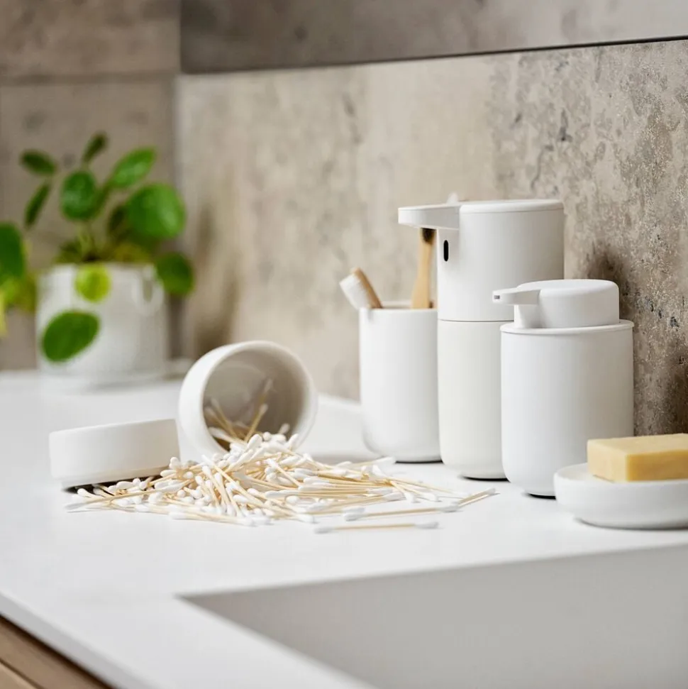 Tandbørstekruset fra badserien Ume fås i de fineste blide farver. Det er i det hele taget et blødt og behageligt bekendtskab, og det er designertrioen VE2, som står bag udformningen af de velproportionerede elementer i serien. Højde 10,3 cm.
