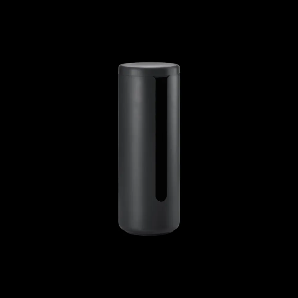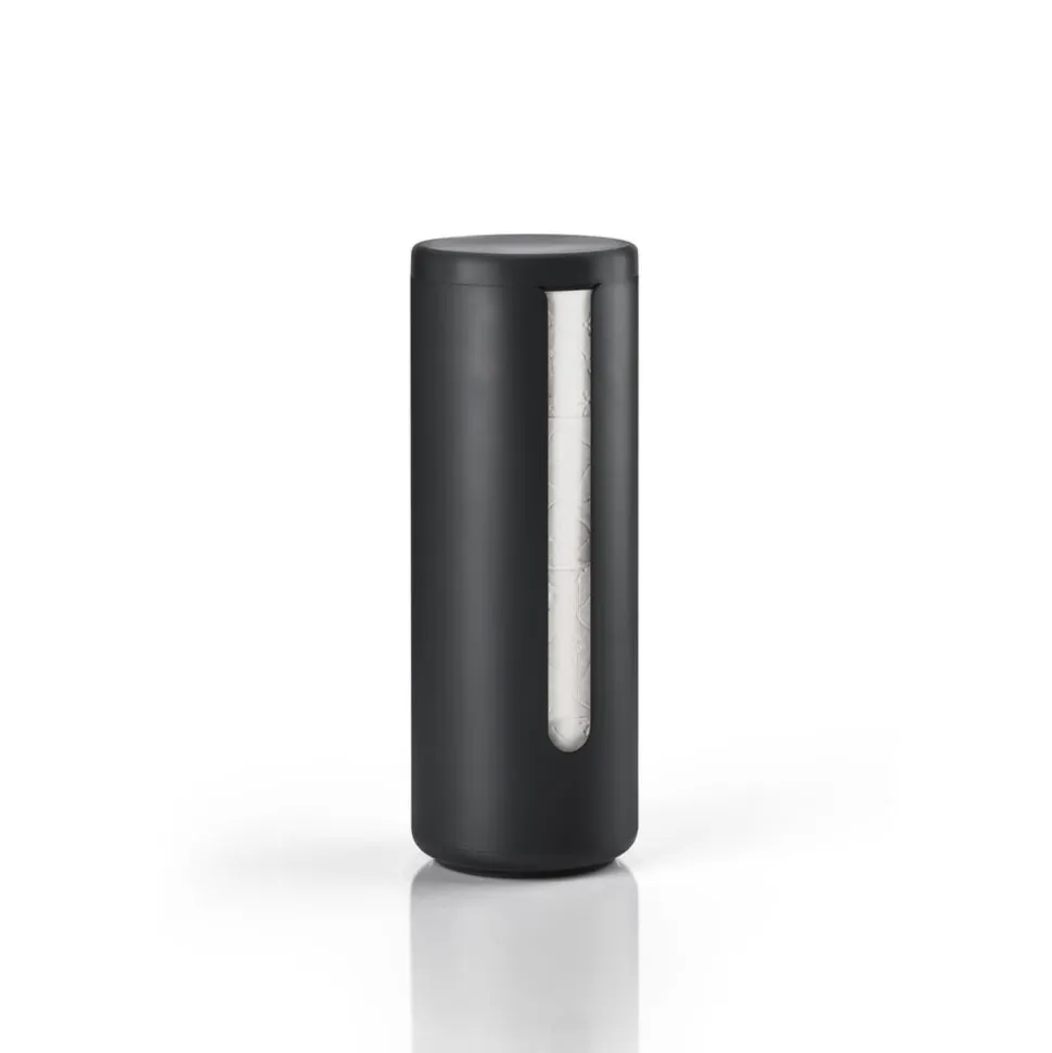 Den cylinderformede toiletrulleholder har plads til tre ruller, og du kan placere den, hvor du vil. Takket være tyngden i bunden står det lille dekorative tårn stabilt på gulvet. Alt er udført i pulverlakeret aluminium, så det er let at støve af og kan klare livet i det til tider fugtige miljø som et badeværelse kan være. Du fylder nemt nye ruller i ved at løfte låget af.