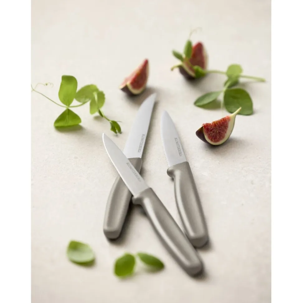 Urteknivsættet består af tre forskellige urteknive, der er lette at håndtere og ideelle til præcisionsarbejde i både det salte og søde køkken. Uanset om du skærer frugter og bær, grøntsager eller små delikate ingredienser, får du fuld kontrol og knivskarpe resultater hver gang. Velegnet til opvaskemaskine.