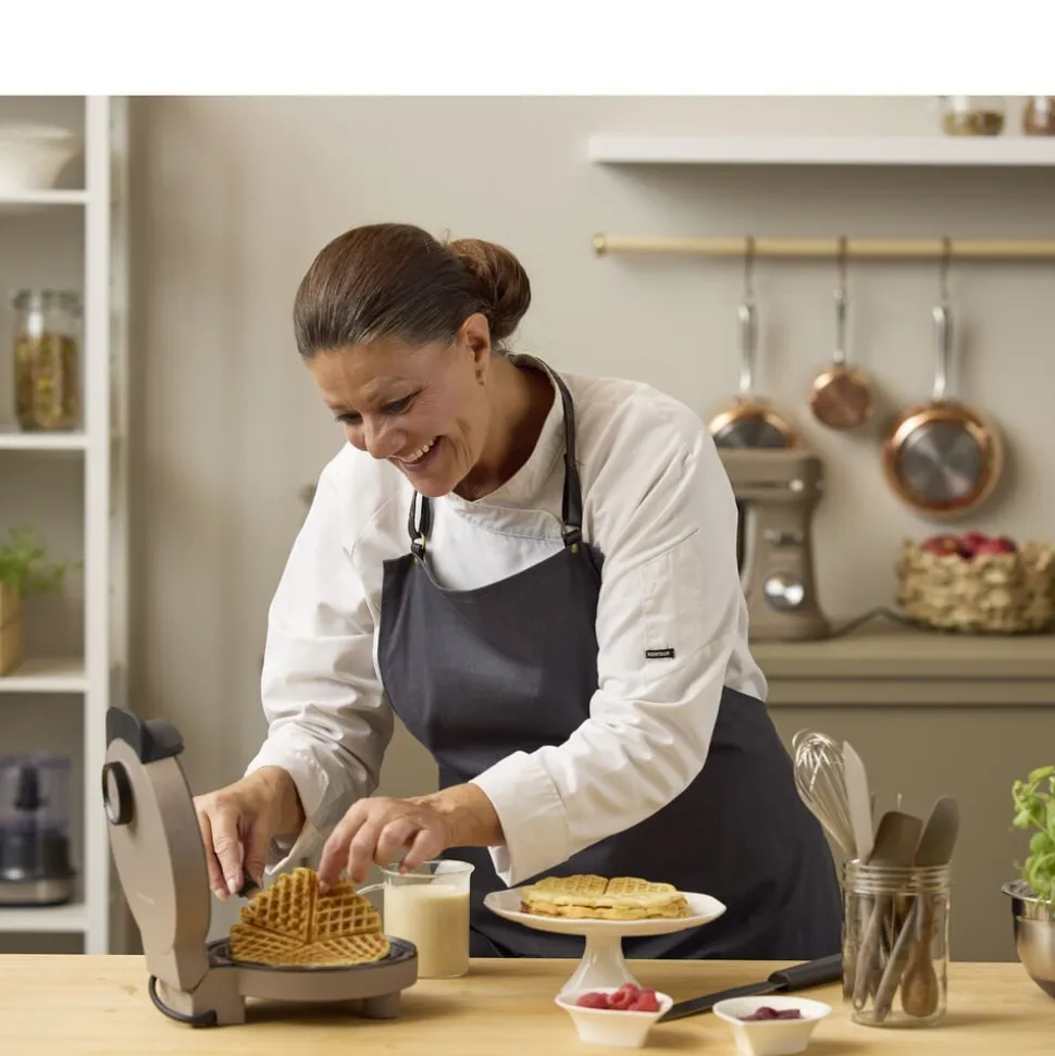 Giv morgenbordet eller eftermiddagshyggen et ekstra skud kærlighed med hjerteformede vafler, der vækker begejstring hos både store og små. Vaffeljernet har plader med en diameter på 15,5 cm og en non-stick-belægning, som får dine vafler til at slippe nemt – og den keramiske belægning er fremstillet af råvarer, der ikke indeholder PFAS. Med justerbar temperatur, lysindikator og en smart dampventilering, som sikrer, at hver vaffel får den helt rigtige sprødhed.