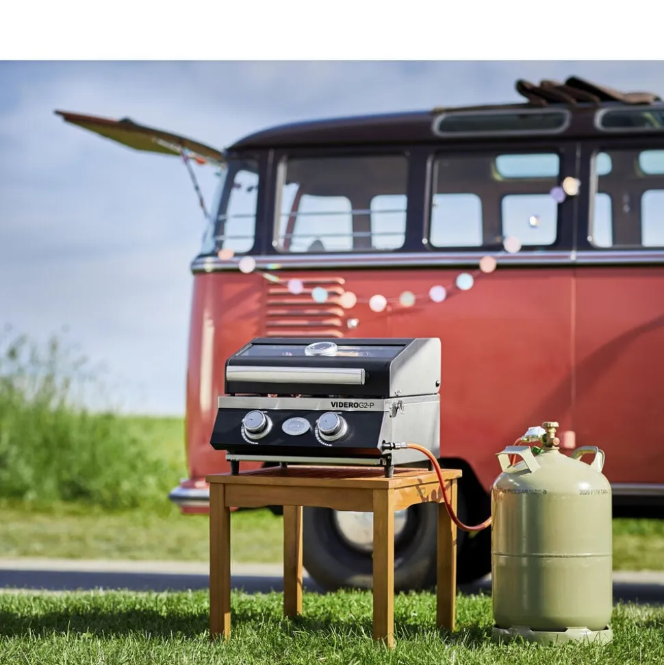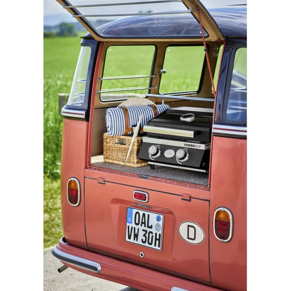 Rösle Videro G2-P gasgrill med mange funktioner og let at transportere. 2 hovedbrændere lavet af rustfrit stål (hver 2,2 kW). Hovedgrillområde: 39 x 32,5 cm. Opvarmningsstativ: 39 x 13 cm. Todelt grillrist i rustfrit stål med plads til en separat grillbakke. Der fås også en bæretaske (varenr. 26879) og et stativ (varenr. 26880) til Rösle Videro G2-P gasgrill, som kan tilkøbes separat.