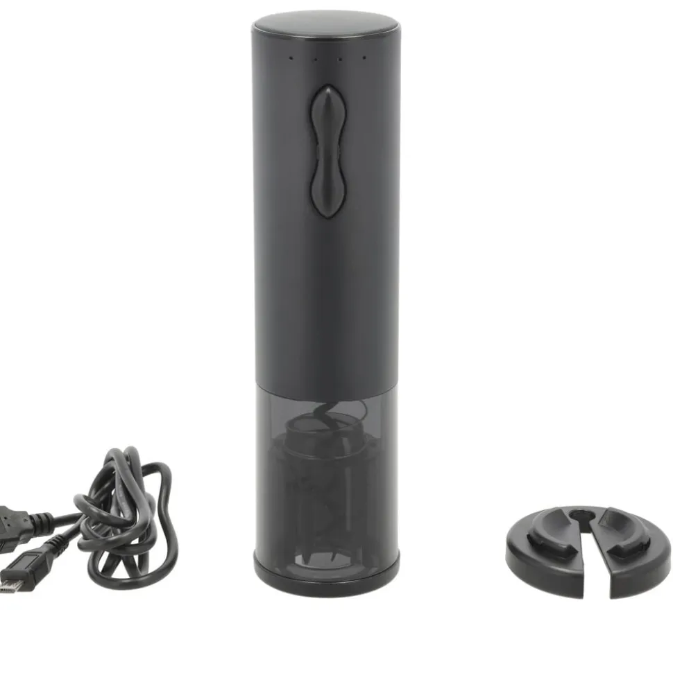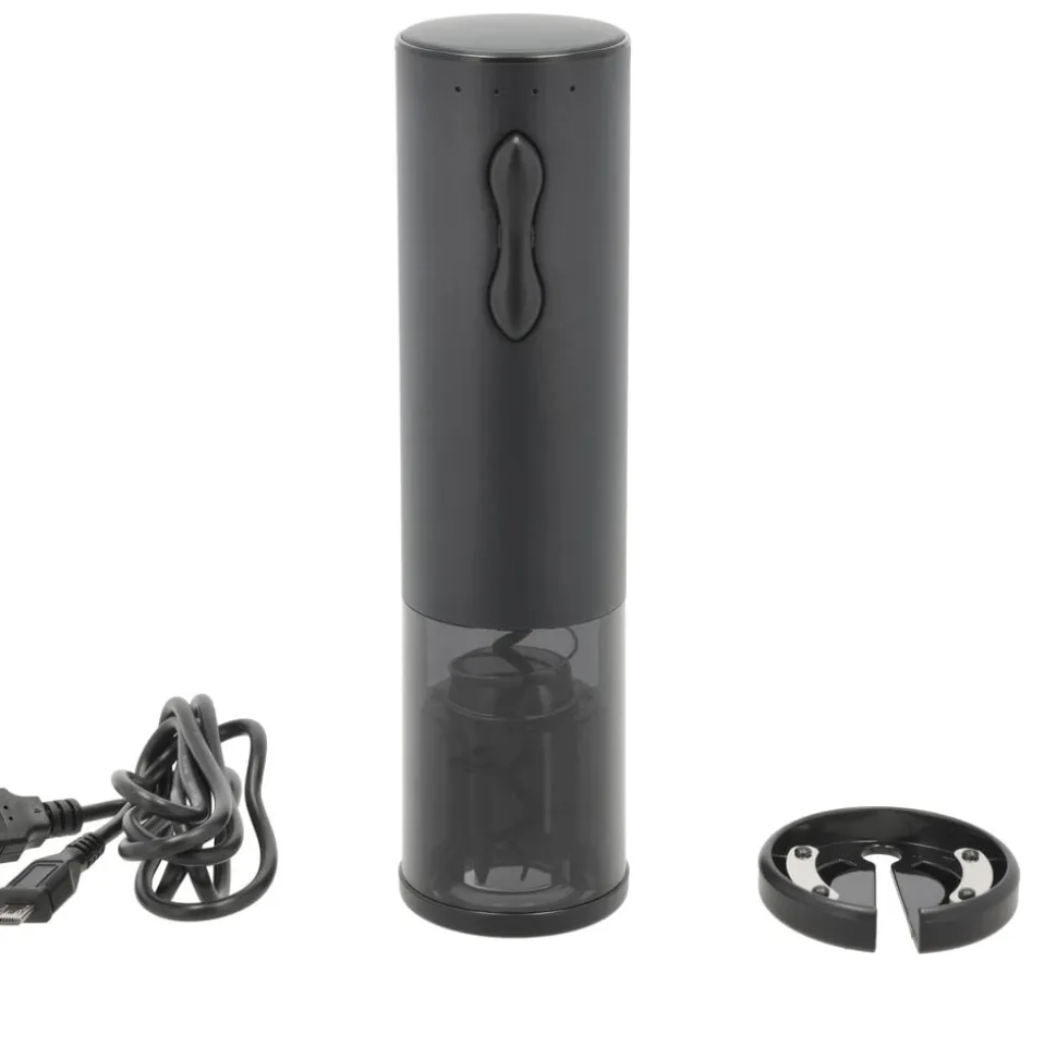 En batteridrevet vinåbner er den perfekte gave til vinelskeren eller som en praktisk tilføjelse til dit eget hjem. Vinåbneren har et stilrent design i rustfrit stål og en mat sort finish. Den er drevet af et genopladeligt Li-ion batteri og kan håndtere op til 70 flasker på en enkelt opladning. Og når den trænger til en genopladning, er det nemt at oplade den med det medfølgende USB-kabel. Vinåbneren er meget alsidig og designet til at passe til de fleste vinflasker. Den medfølgende folieskærer gør det let at fjerne folien fra din vinflaske, hvorefter vinåbneren hurtigt og effektivt fjerner korkproppen på under 10 sekunder.