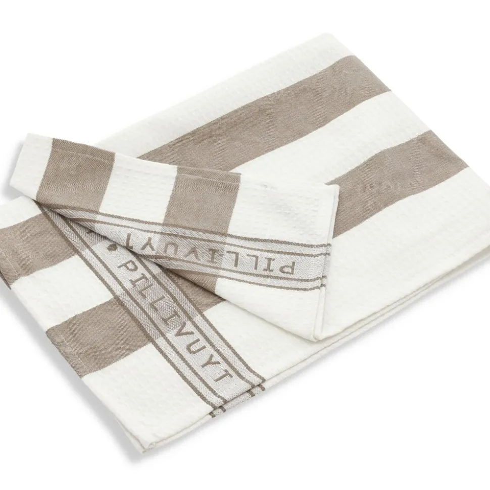 Køkkentekstiler i gode design i både klassiske og moderigtige farver. Tekstilerne vaskes ved 40 grader. Overskudsfarve kan forekomme, især ved mørke farver, derfor anbefales separat vask. Brug vaskemiddel uden optisk hvidt og blegemiddel. Krympning 5-10 %. Tekstilet kan “trækkes” glat eller stryges.