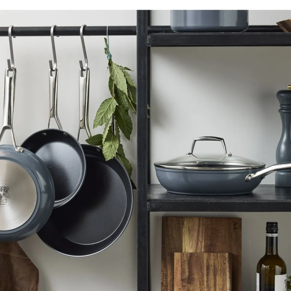 Stegepande fremstillet af støbt aluminium, som sikrer, at varmen fordeles og fastholdes jævnt og effektivt over både bund og sider. Stegepanden har en tolags keramisk belægning med non-stick-funktion, er velegnet til alle varmekilder, tåler op til 220 grader C i ovnen og kan gå i opvaskemaskinen. Tåler alle typer redskaber og har en diameter på 20 cm. Vægt 550 g.