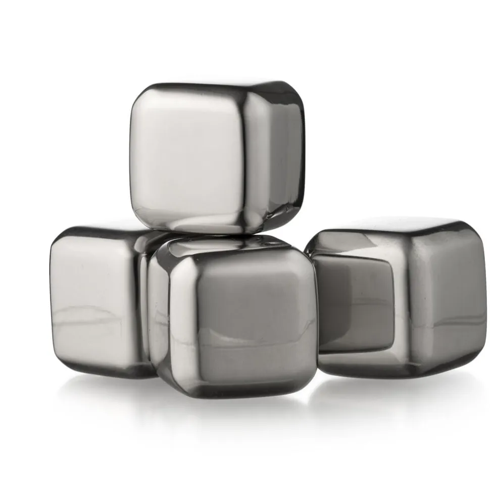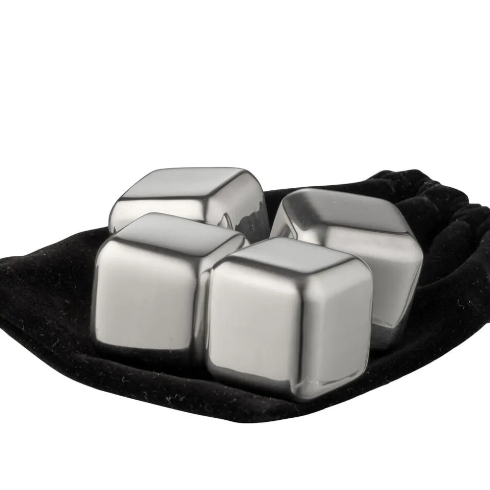 4 whiskysten i stål. Hold din drink kold med whiskysten af stål og undgå, at den bliver fortyndet af vand fra smeltede isterninger. Stenene vaskes og lægges derefter i fryseren inden brug. Opbevaringspose medfølger.
