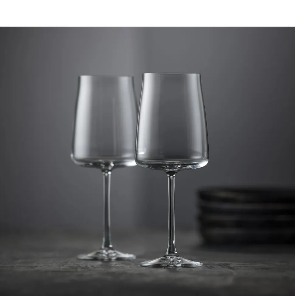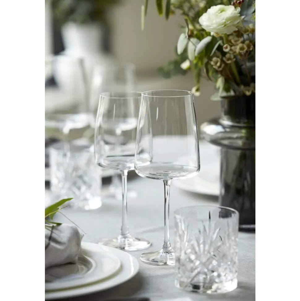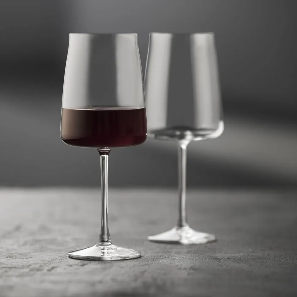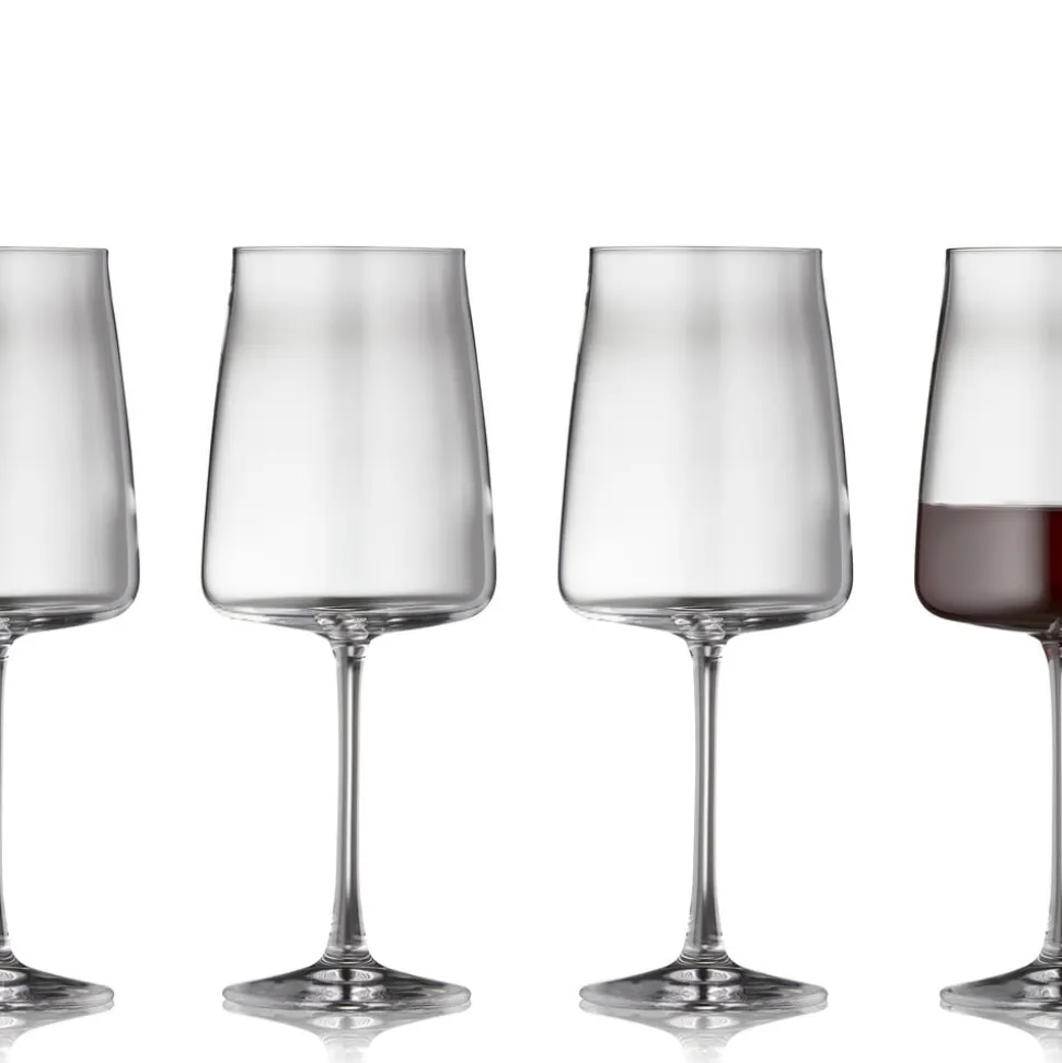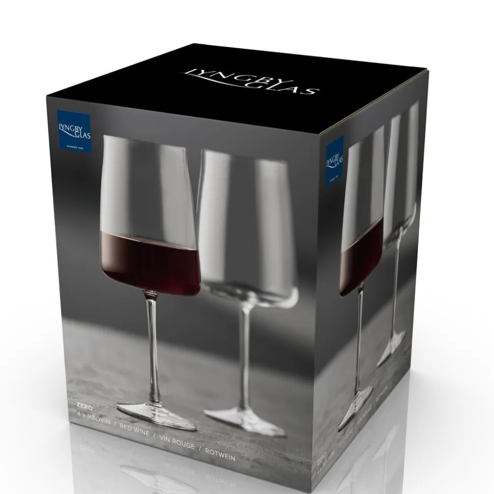 4 smukke rødvinsglas fra glasserien Zero fra Lyngby Glas. Nyd din yndlingsvin og glassenes fine elegance. Tåler opvaskemaskine. 54 cl, højde 23 cm.