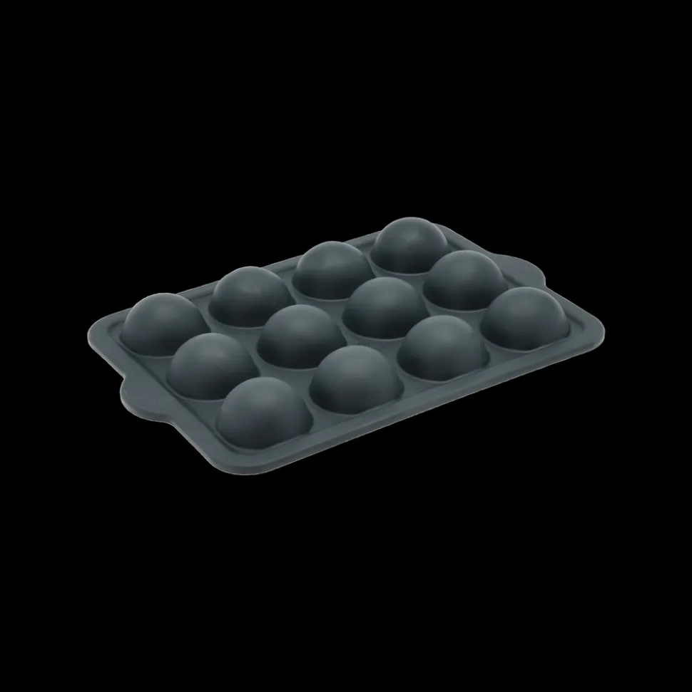 Chokolade-/buddingform med 12 huller, dia. 6,5 cm, i grå silikone med stabiliserende stålkant.