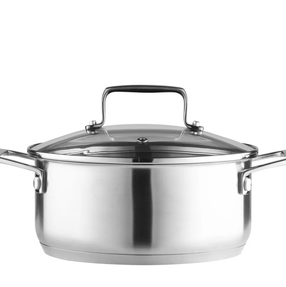 I bunden af gryderne findes en aluminiumskerne overdækket af rustfrit stål på begge sider, også kaldet en sandwichbund, hvor det yderste lag er magnetisk. Varmen fordeles og fastholdes jævnt og energieffektivt over både bund og sider, og samtidig er materialet let. Det er desuden meget hygiejnisk og nemt at rengøre. Gryderne kan bruges på alle varmekilder – fra traditionelle kogeplader, glaskeramiske og induktionskogeplader til el- og gaskomfurer. Produkterne er velegnede til vask i opvaskemaskine.