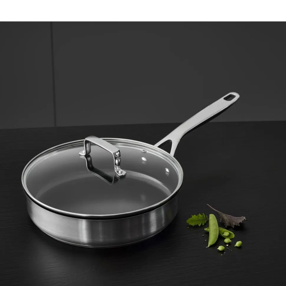 Sauterpande med glaslåg, 26 cm, fra Morsøs 79NORD-serie af 18/8 rustfrit stål med satinfinish og en 2-lags keramisk non-stick belægning. Sauterpanden kan anvendes til alle varmekilder samt ovn op til 250 grader. Den er god til daglig brug og er nem at bruge og rengøre.