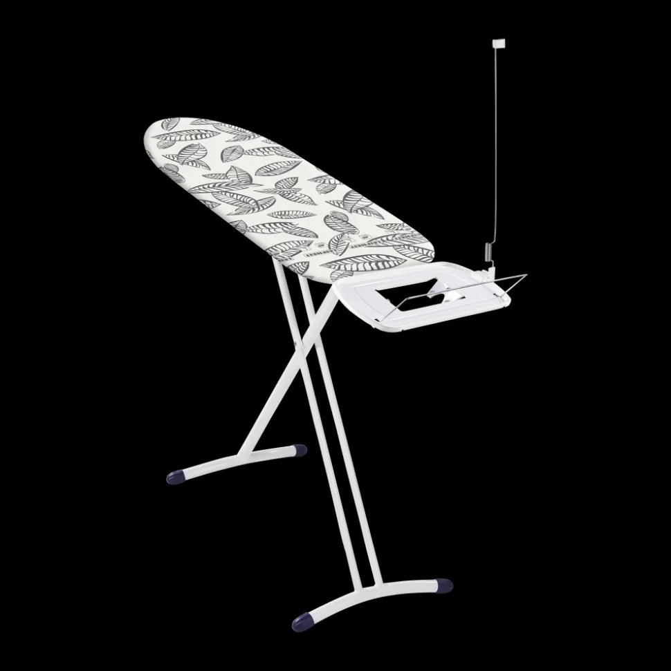 Airboard Express L Solid har alt, hvad et moderne strygebræt har brug for. Strygebrættet er ultralet og stabilt med ekstra stor strygeflade. Strygeoverfladen måler 130 x 38 cm og arbejdshøjden kan justeres mellem 76 og 100 cm. Airboard Express L Solid er både nemt at stille op og folde sammen. Strygebrættet har en fast bakke til dampstationer samt en kabelholder, så ledningen ikke er i vejen for strygningen. Skjorter m.m. kan hænges på bøjleholderen på bakken efter strygning. Velegnet til strygejern og alle standarddampstationer. 5 års garanti