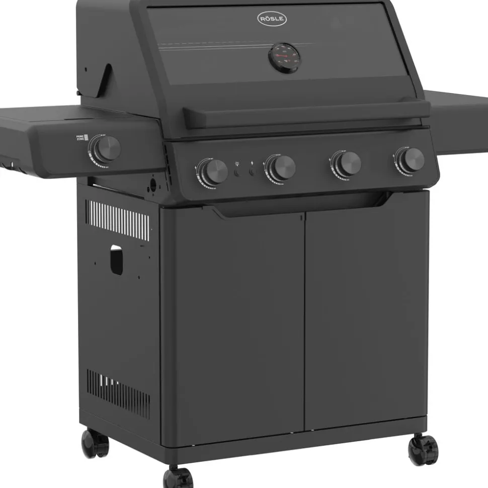 Rösle AllFlame Prime 4 er en kraftfuld gasgrill med 4 effektive heatspire-hovedbrændere i rustfrit stål (hver 3,5 kW), som sikrer hurtig opvarmning og en meget jævn varmefordeling. Grillen har også en integreret primezone-sidebrænder (4 kW) i venstre sidebord, der giver ekstremt intensiv varme – perfekt til hurtig stegning og grill ved høje temperaturer, som f.eks. saftige bøffer med en lækker stegeskorpe. Med en rummelig grillflade på 70 x 45 cm og en varmehylde på 70 x 16 cm er der masser af plads til tilberedning. De emaljerede støbejernsriste sikrer de klassiske grillstriber på kødet. Det smarte Vario+ grillsystem giver dig mulighed for at udskifte den runde rist med en pizzasten (23937), grillplade (24145), gryde (24404) eller wok (24143), som placeres tæt på varmen og hurtigt bliver meget varm. Vario-tilbehør sælges separat. Pulverlakeret stålkabinet beskytter mod vind og vejr, og der er plads til en gasflaske på op til 11 kg.