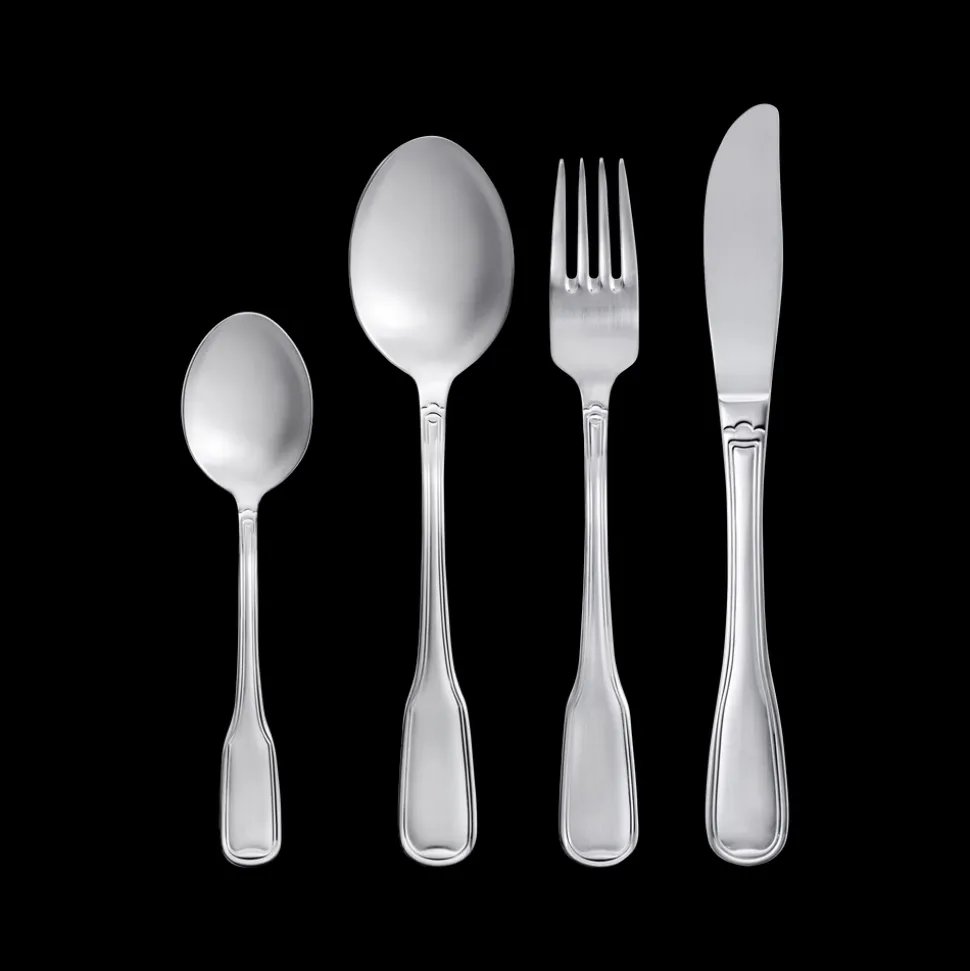 Attaché står for et rent design inspireret af barokken. Bestikket er skabt i traditionel stil med en dobbeltrillet kant og produceret i matpoleret rustfrit stål. Tåler opvaskemaskine.