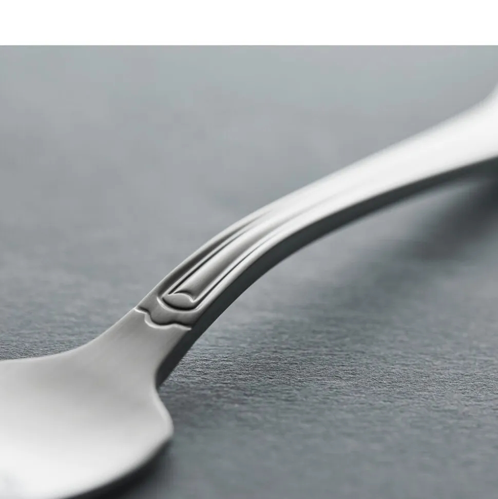 Attaché står for et rent design inspireret af barokken. Bestikket er skabt i traditionel stil med en dobbeltrillet kant og produceret i matpoleret rustfrit stål. Tåler opvaskemaskine.