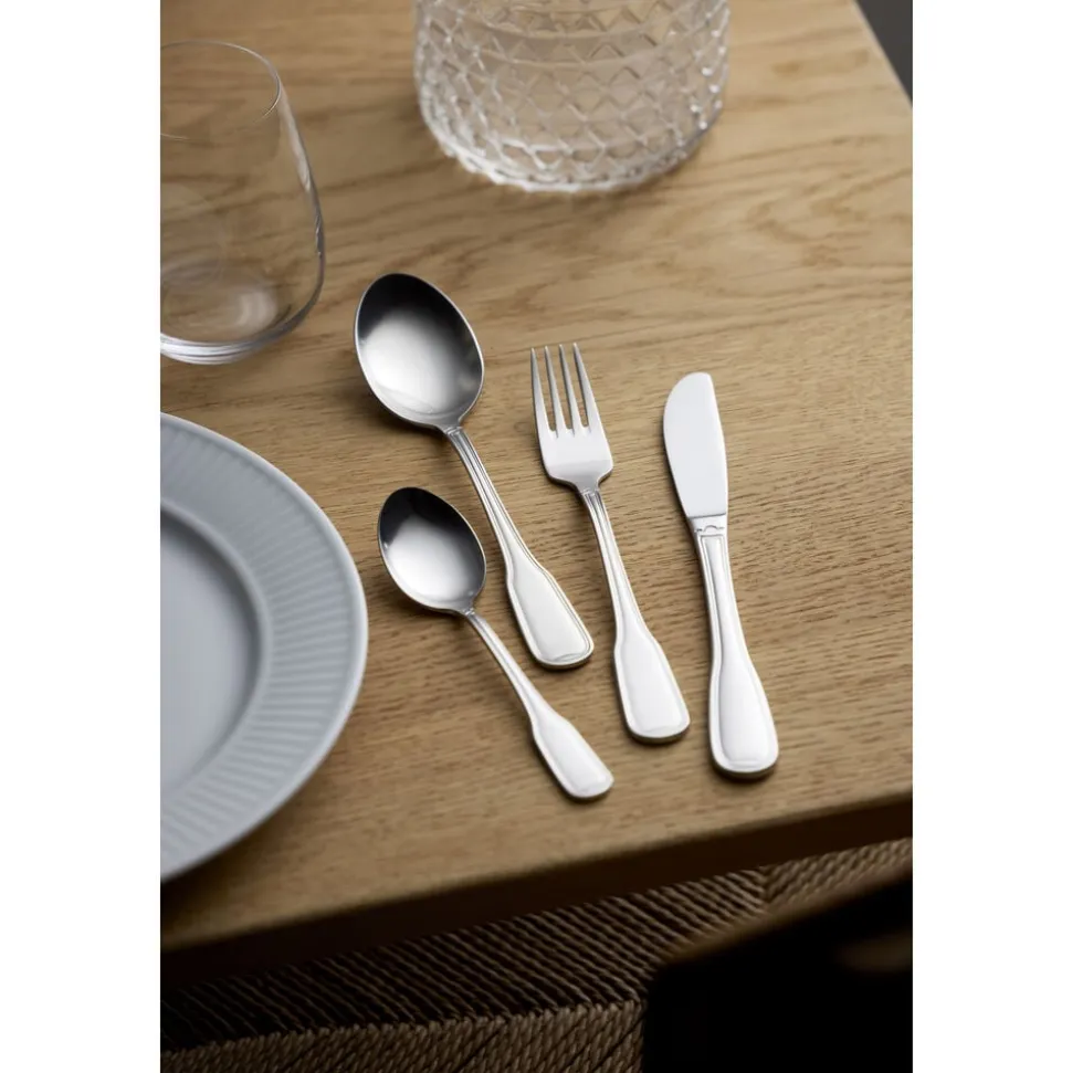 Attaché står for et rent design inspireret af barokken. Bestikket er skabt i traditionel stil med en dobbeltrillet kant og produceret i matpoleret rustfrit stål. Tåler opvaskemaskine.