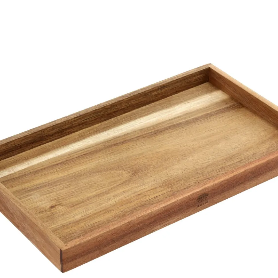 Bakke i akacietræ. Kun fantasien sætter grænser for hvad bakken skal bruges til i køkkenet. Den er perfekt både til organisering af olier, eddiker, krydderier og krydderurter og til servering af snacks. 35 x 20 x 3 cm.