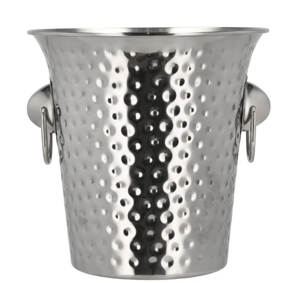 Denne elegante champagnekøler er fremstillet af rustfrit stål med en flot hamret overflade, der tilføjer et sofistikeret præg til enhver begivenhed. Med en kapacitet på 4 liter er den ideel til at holde din yndlingsflaske afkølet. De to håndtag sikrer nem transport, selv når køleren er fyldt med is. Perfekt til alle lejligheder, hvor stil og funktionalitet går hånd i hånd.