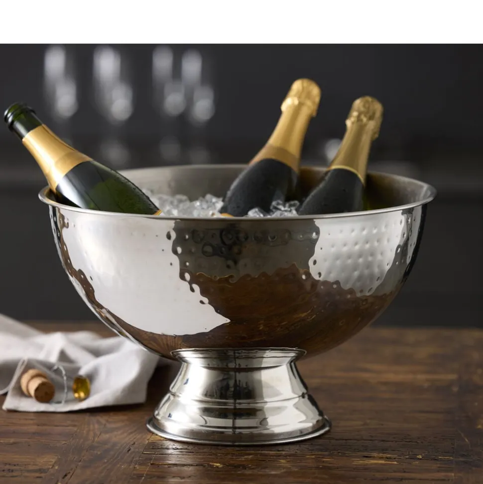 Champagnekøler på fod. Fremstillet i hamret stål, mat indeni og blankpoleret udvendigt.