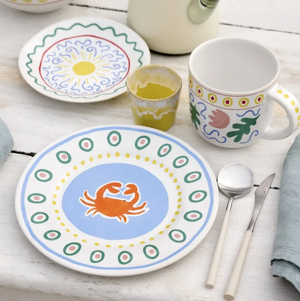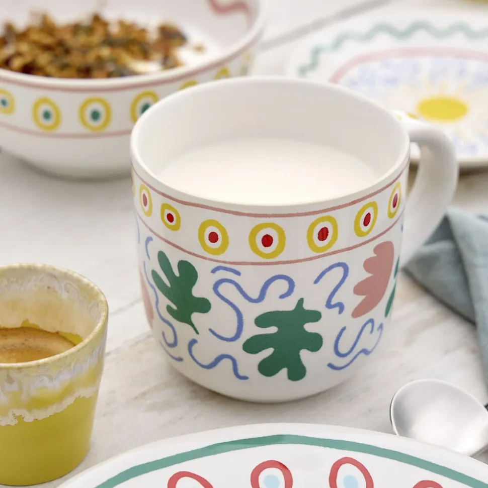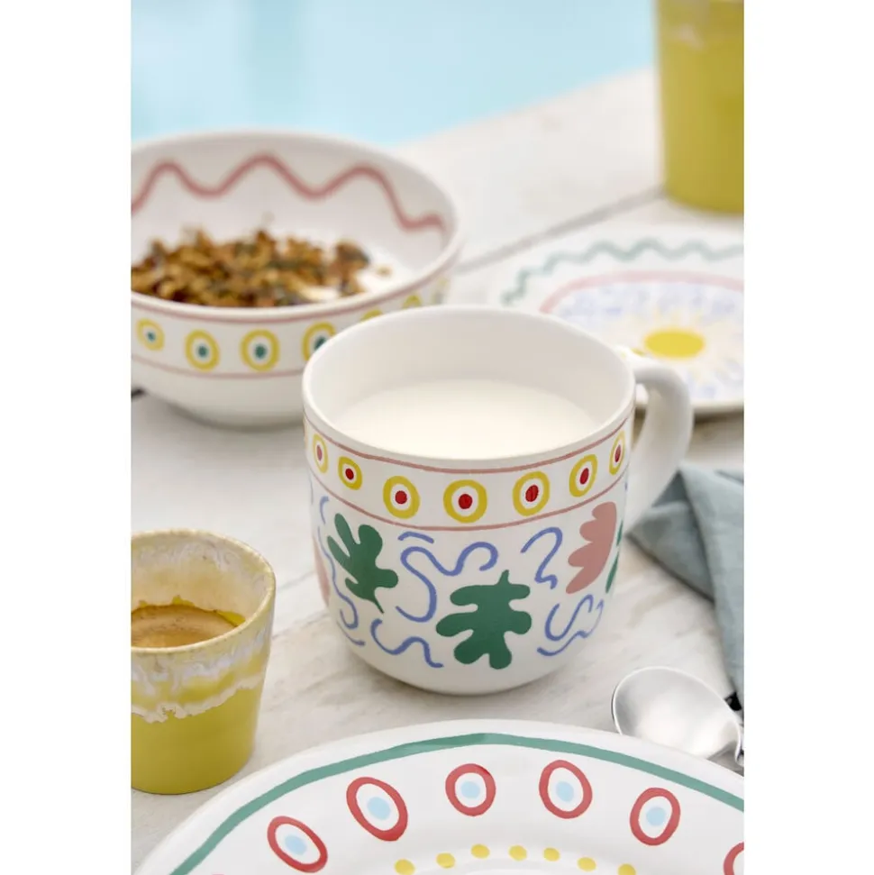 Krus, 10 cm. Dette krus er fuld af charme – dekoreret med farverige mønstre og legende streger, der emmer af sydlandsk lethed. Brug det til din morgenkaffe, eftermiddagste eller en varm kop kakao. Perfekt til hyggelige pauser, hvor tiden gerne må gå lidt langsommere.