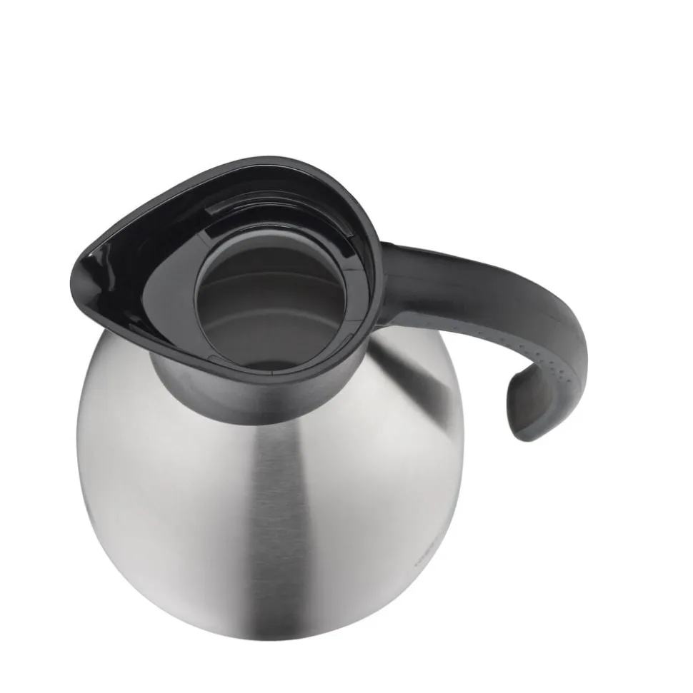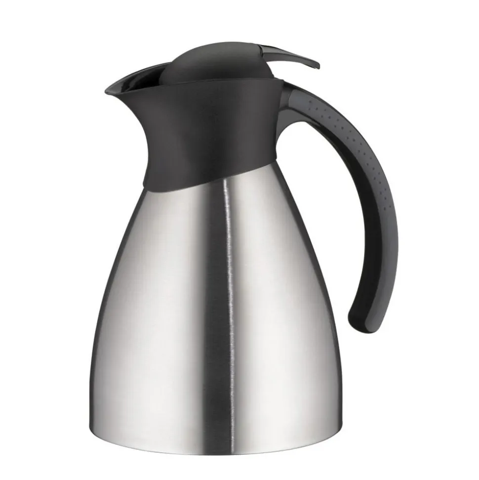 Klassisk termokande i et solidt, praktisk design. Mat, rustfrit stål i høj kvalitet. Dobbeltvægget indsats af rustfrit stål, der er yderst robust og holdbart over for slag og stød. Unikt og praktisk hældesystem. Kan betjenes med én hånd. Holder varmt i 12 timer og koldt i 24 timer.