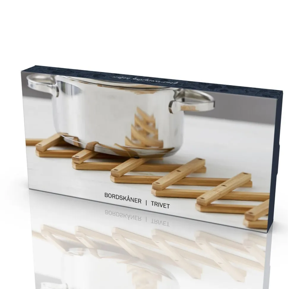 Superfleksibel bordskåner i bambus. Bordskåneren kan trækkes ud til præcis den størrelse, du har brug for. Den kan passe til en enkelt gryde, og den kan trækkes ud til 1 hel meter, så der kan stå flere gryder og skåle ved siden af hinanden. Bordskåneren er også perfekt til store fade og lange tapasbrætter.