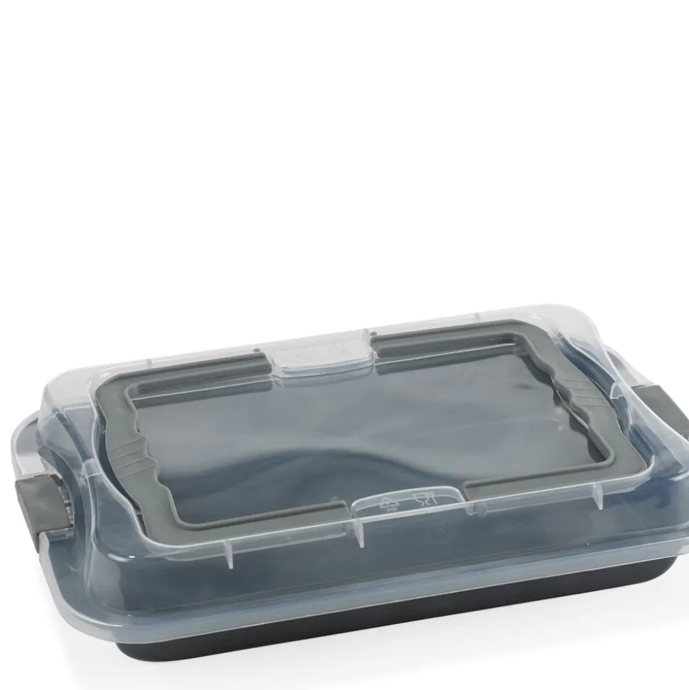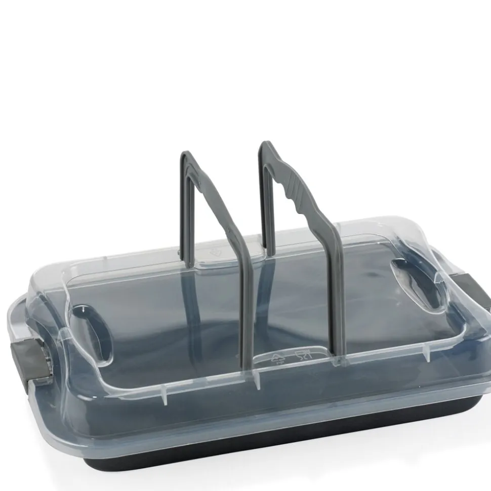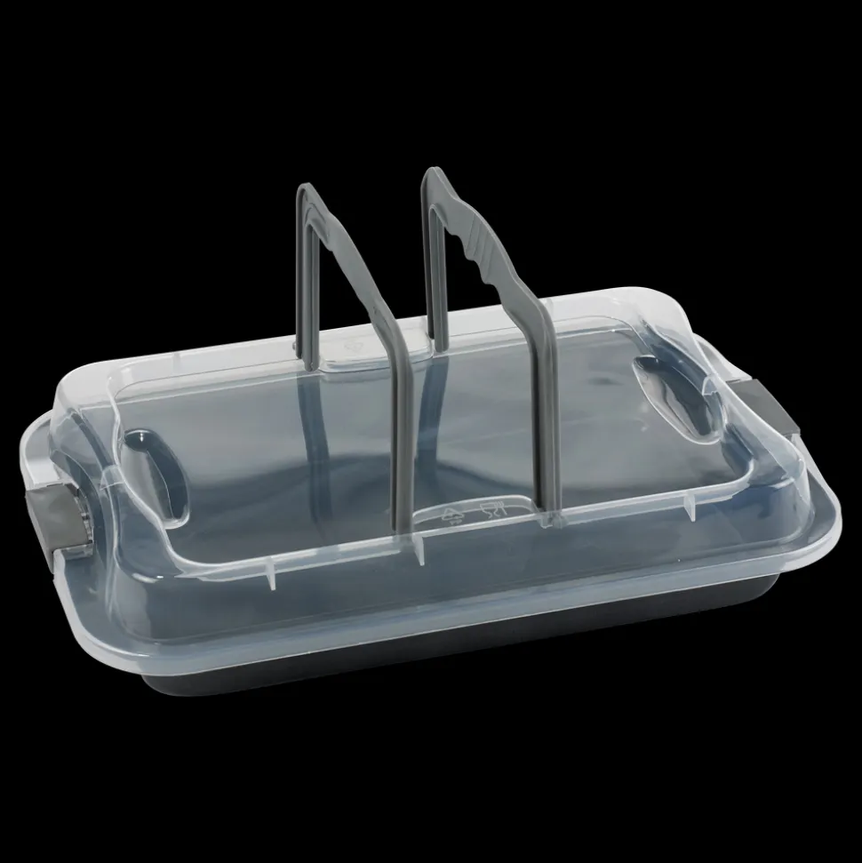 Bradepande med låg og håndtag, velegnet til transport af bagværk. Grå.
