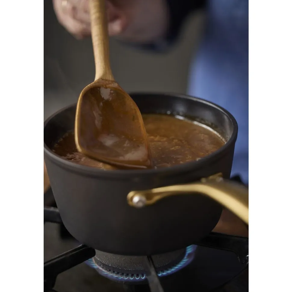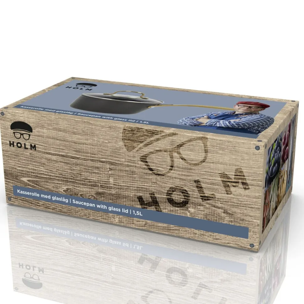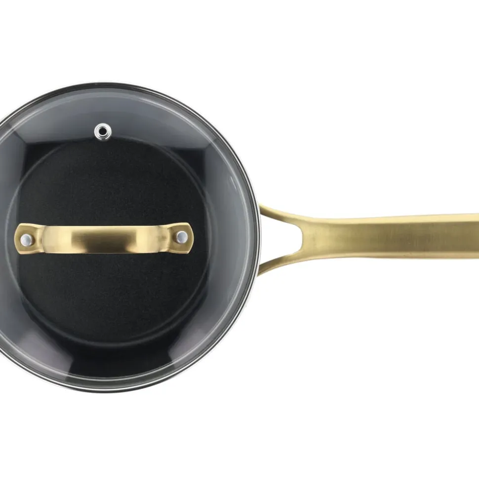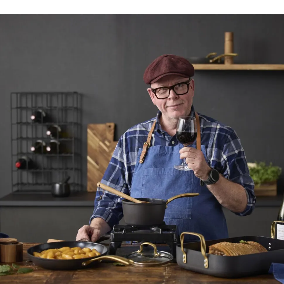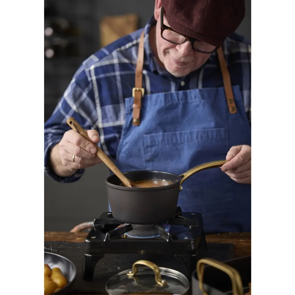 Brasserie-serien er fremstillet i aluminium. Gryder og pander har keramisk belægning indvendigt, sort coating udenpå og mat messingfarvede greb og håndtag. Brasserie er velegnet til alle varmekilder, også induktion, og tåler ovn op til 220 grader – med glaslåg dog kun 200 grader. Vi anbefaler at bruge redskaber i plast eller træ. Ikke egnet til opvaskemaskine. Vaskes med varmt vand og sæbe før første brug. Den keramiske belægning er fremstillet af råvarer, der ikke indeholder PFAS.