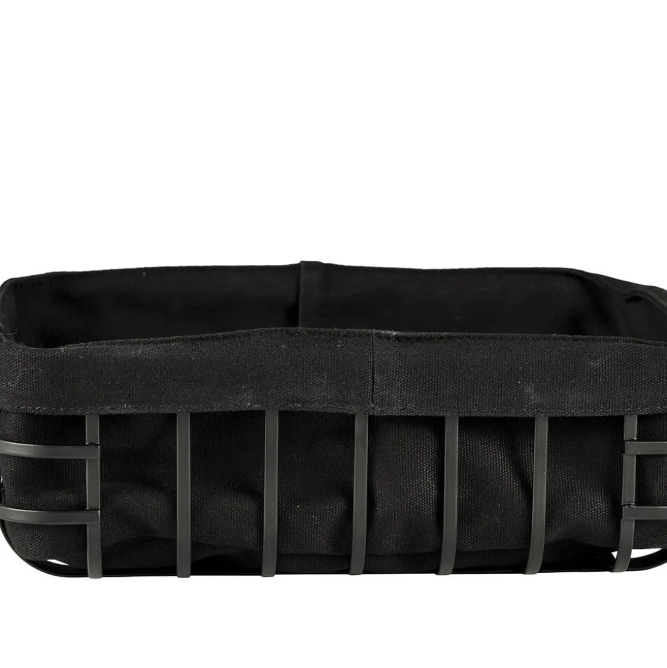 Byd morgenbrød og brødet til supper og salater rundt i en flot og rustik servering. Smart og rummelig brødkurv i mat, sort pulvercoated metal med sort stofpose i 100 % bomuld. 27 x 17 x 9 cm.
