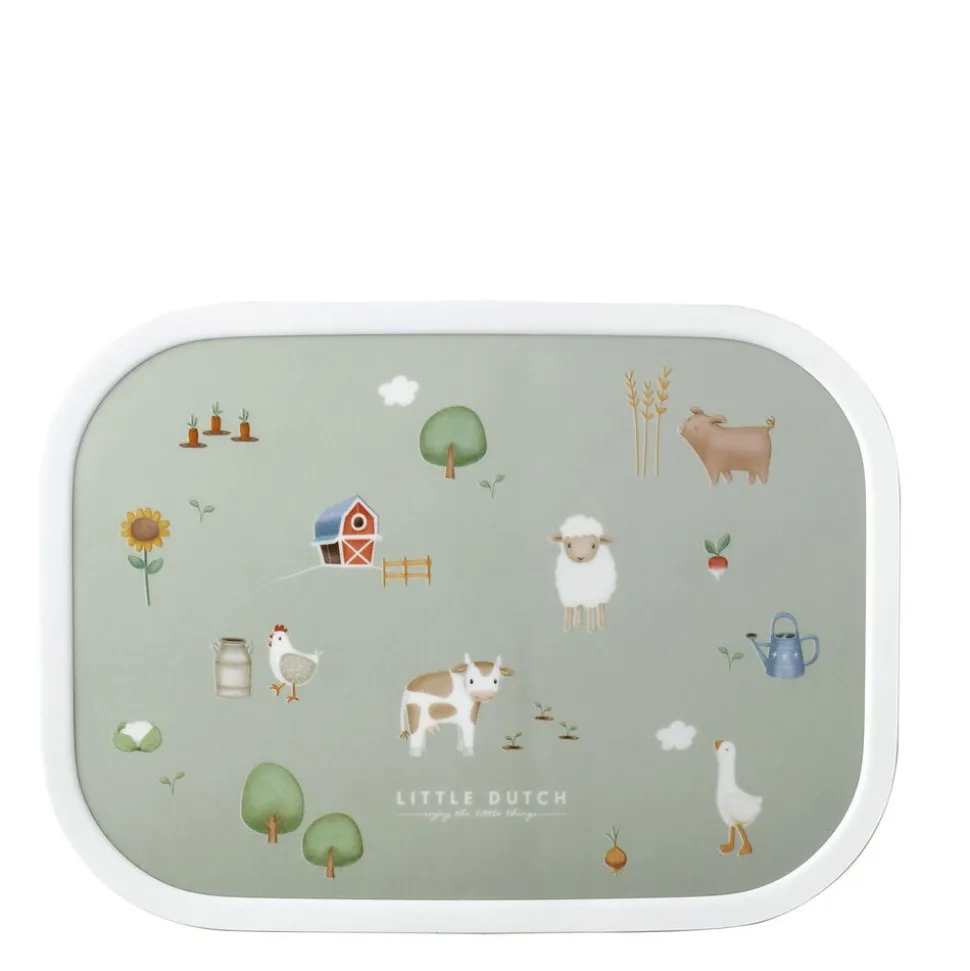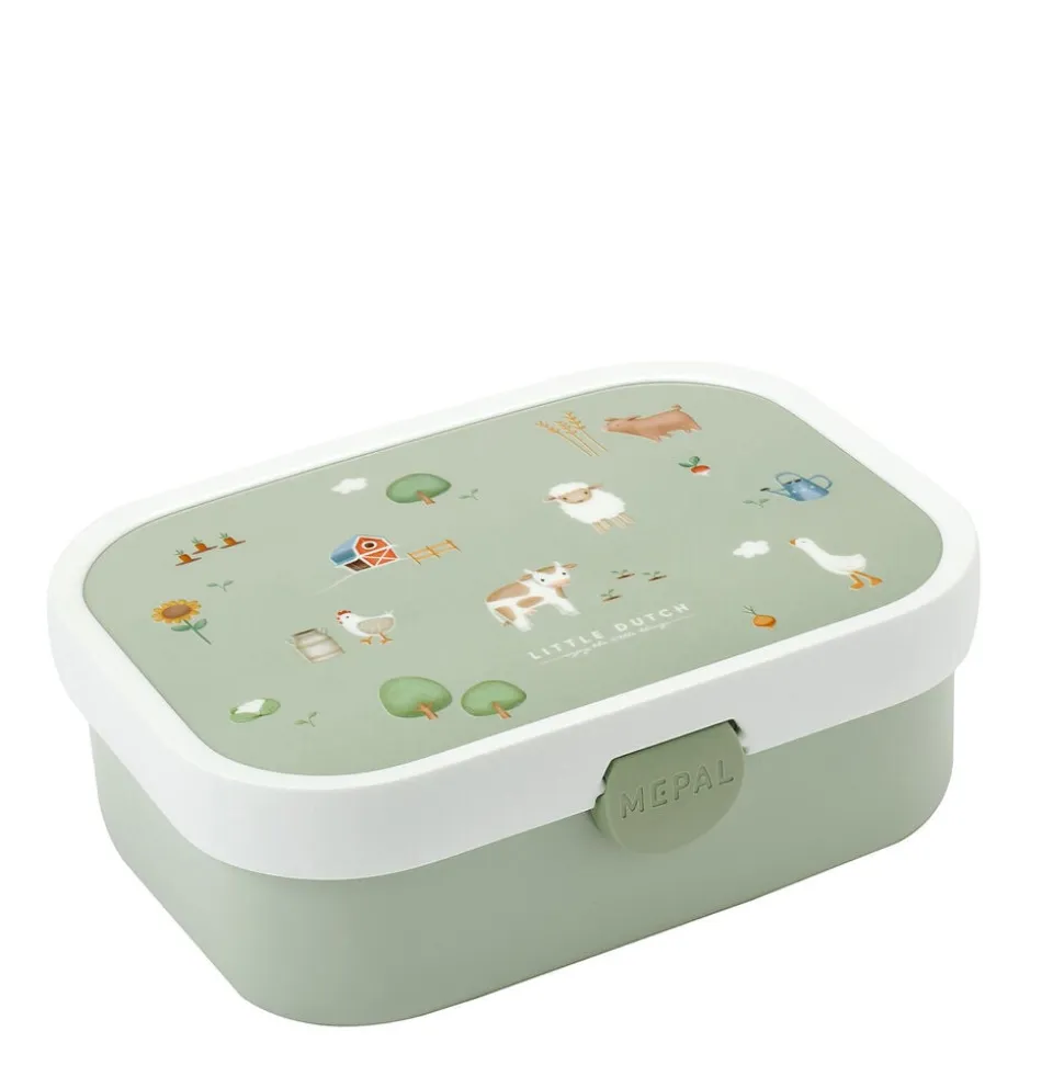 Robust og rummelig Mepal madkasse med Little Farm-motiv. Madkassen har en smart og effektiv lukkemekanisme, som er nem for børnene at betjene. Madkassen måler 17,5 x 13 x 6 cm og indeholder en lille gaffel og en aftagelig indsats med to små rum.