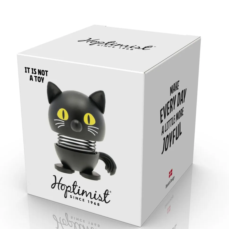 Normalt går katte sine egne veje, men vores Hoptimist-kat ved du, hvor du har. Den hopper kun lidt på stedet, hvis du klapper den på hovedet. En herlig gaveidé til alle, der elsker katte. Ja, selv husets rigtige kat vil sikkert ikke kunne dy sig for at puffe til den nye legekammerat.