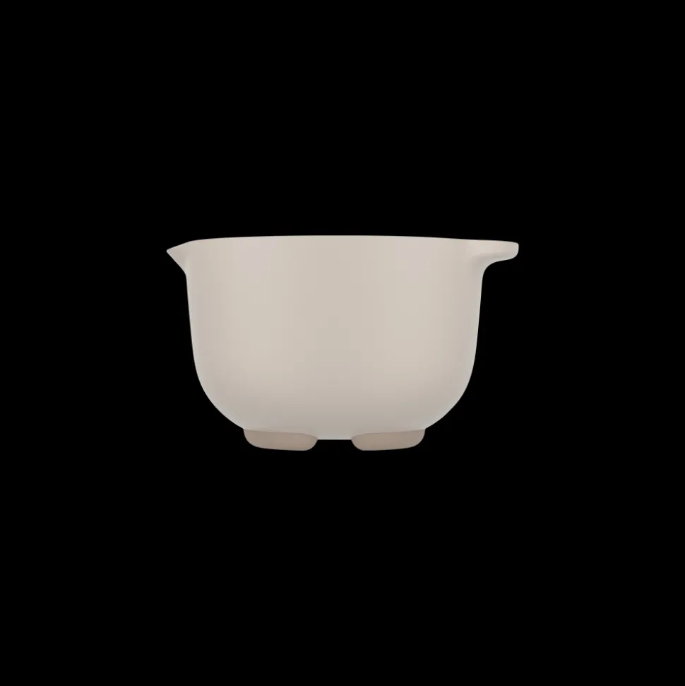 Røreskålen er lavet af pp, et plastmateriale, der tåler mikrobølgeovn og temperaturer op til 110 °C. To smarte åbninger i den skridsikre bundring under røreskålen forhindrer, at der samler sig vand, når du sætter skålen på hovedet i opvaskemaskinen.