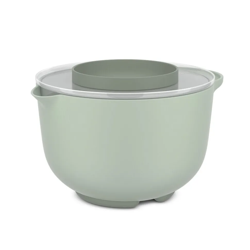 Røreskålen er lavet af pp, et plastmateriale, der tåler mikrobølgeovn og temperaturer op til 110 °C. To smarte åbninger i den skridsikre bundring under røreskålen forhindrer, at der samler sig vand, når du sætter skålen på hovedet i opvaskemaskinen.