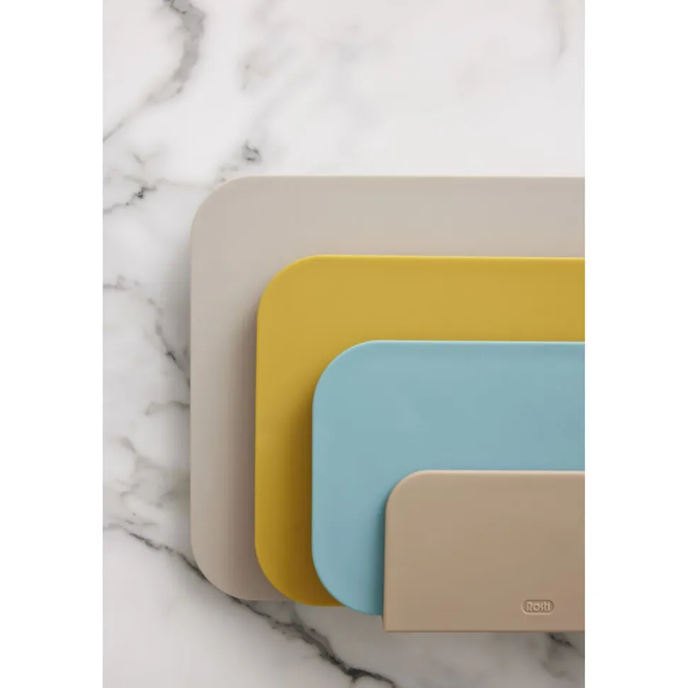 Choptima skærebrætter i størrelserne 26,5 x 16 cm, 30,5 x 20,5 cm og 35,5 x 25,5 cm og farverne curry, humus og nordic green.
