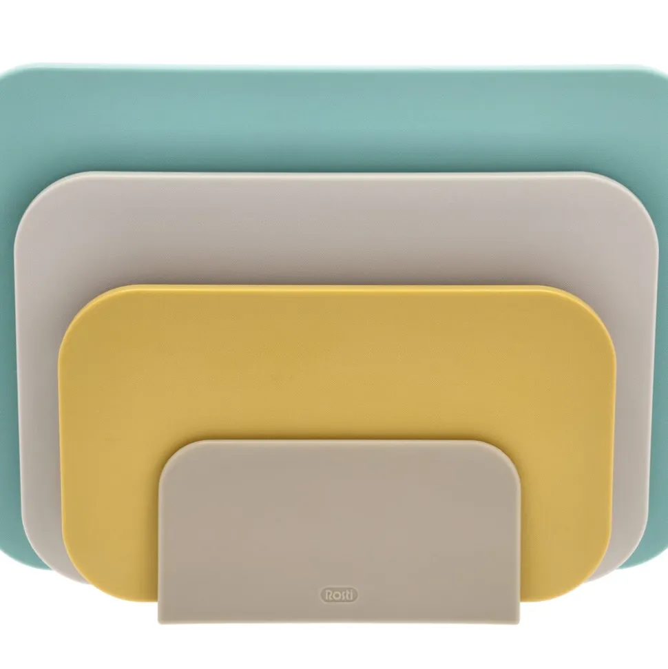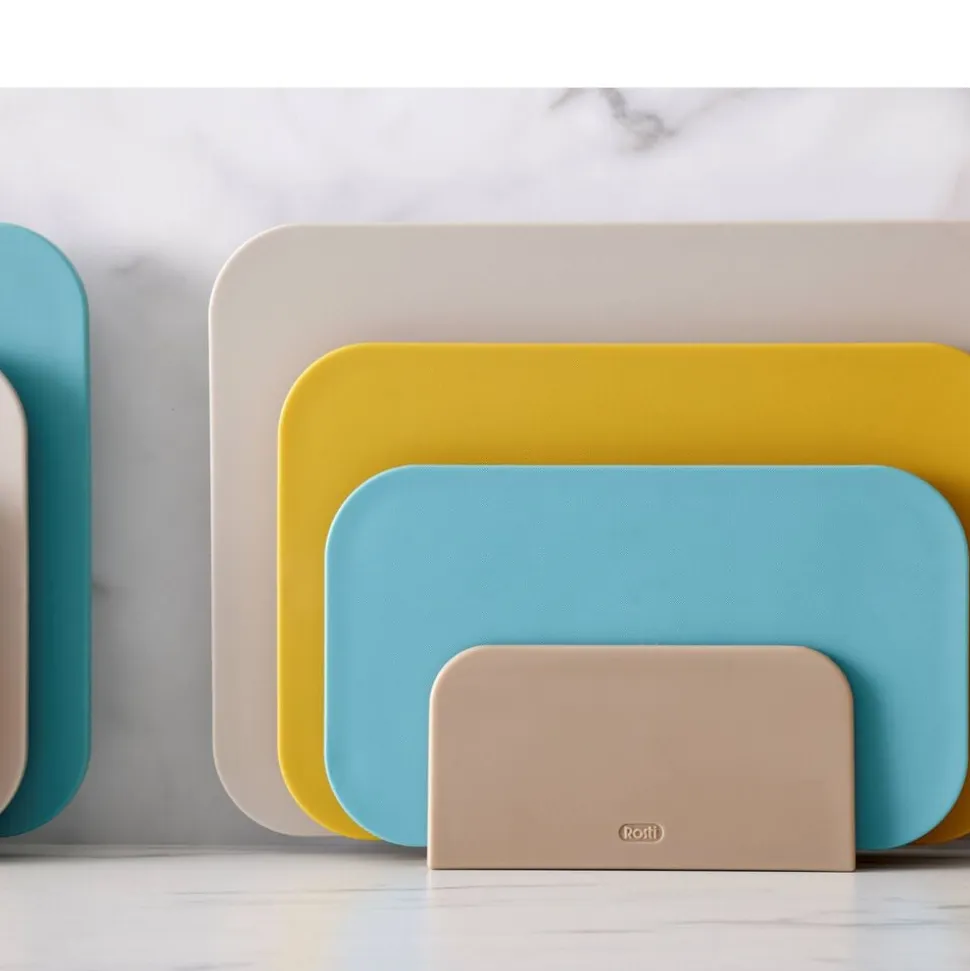 De tre størrelser er samme tykkelse og kan sagtens anvendes til servering og tages med ind på bordet til brød, pølse, oste og tapasanretninger med mere. Derfor er seriens fine farver valgt med grundig omtanke, og med sine venlige former bliver sættet et dekorativt supplement til din køkkenindretning.