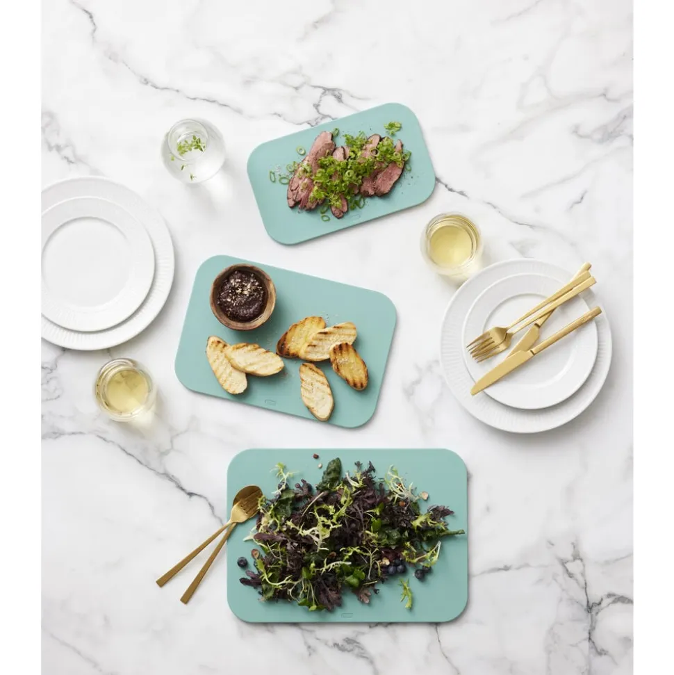 De tre størrelser er samme tykkelse og kan sagtens anvendes til servering og tages med ind på bordet til brød, pølse, oste og tapasanretninger med mere. Derfor er seriens fine farver valgt med grundig omtanke, og med sine venlige former bliver sættet et dekorativt supplement til din køkkenindretning.
