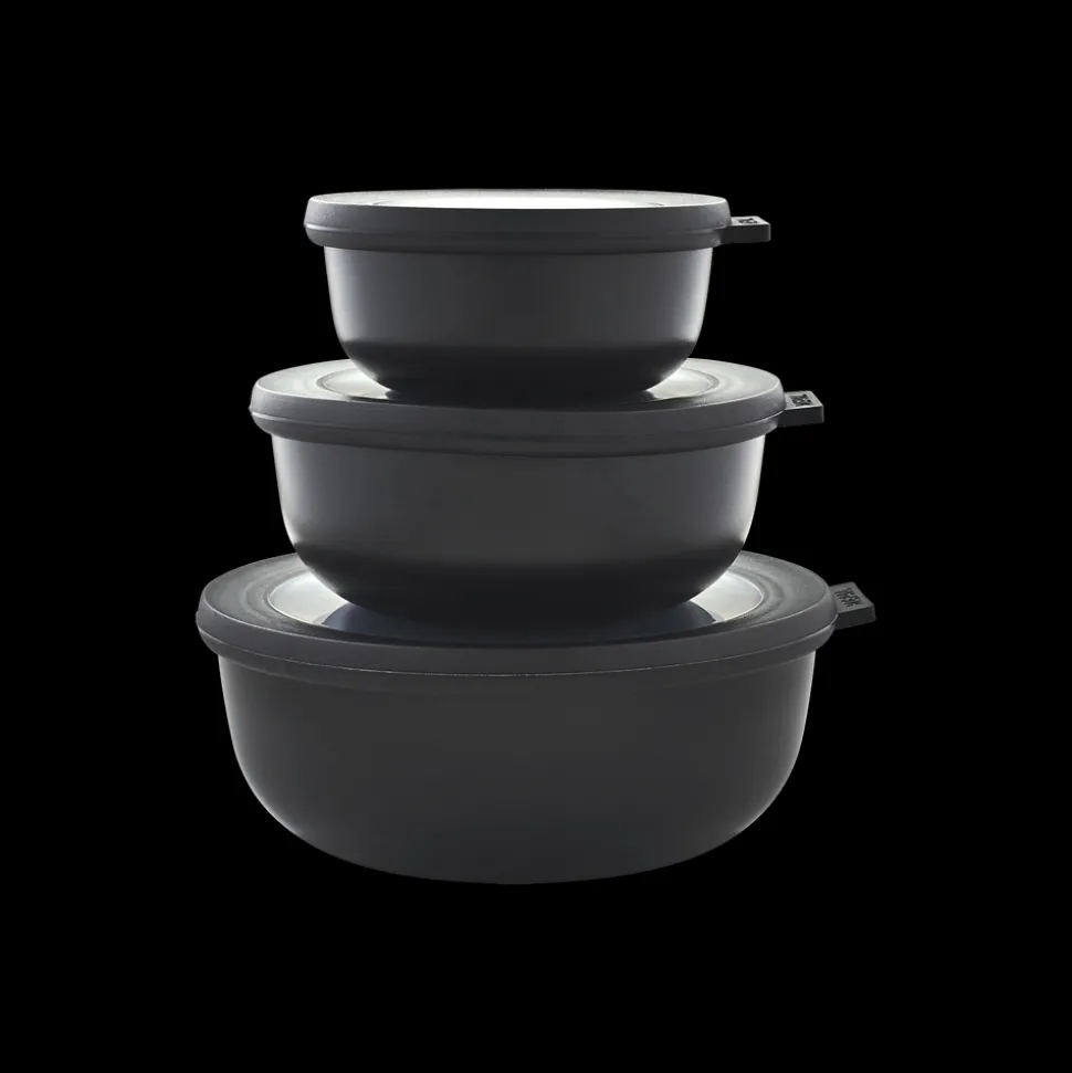Mepal Cirqula opbevarings- og serveringsskålesæt – rummelig, praktisk og dekorativ i kølige, nordiske farvetoner. Sæt bestående af 350 ml, 750 ml og 1250 ml.