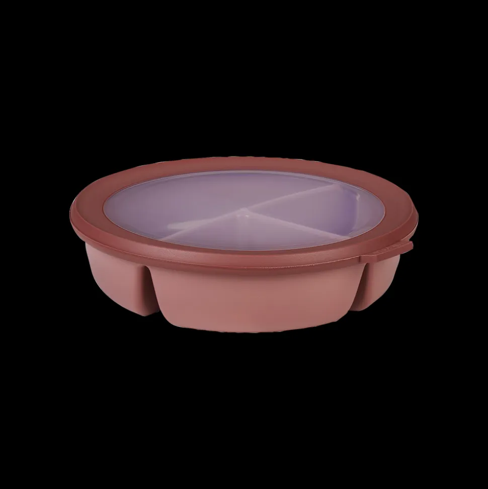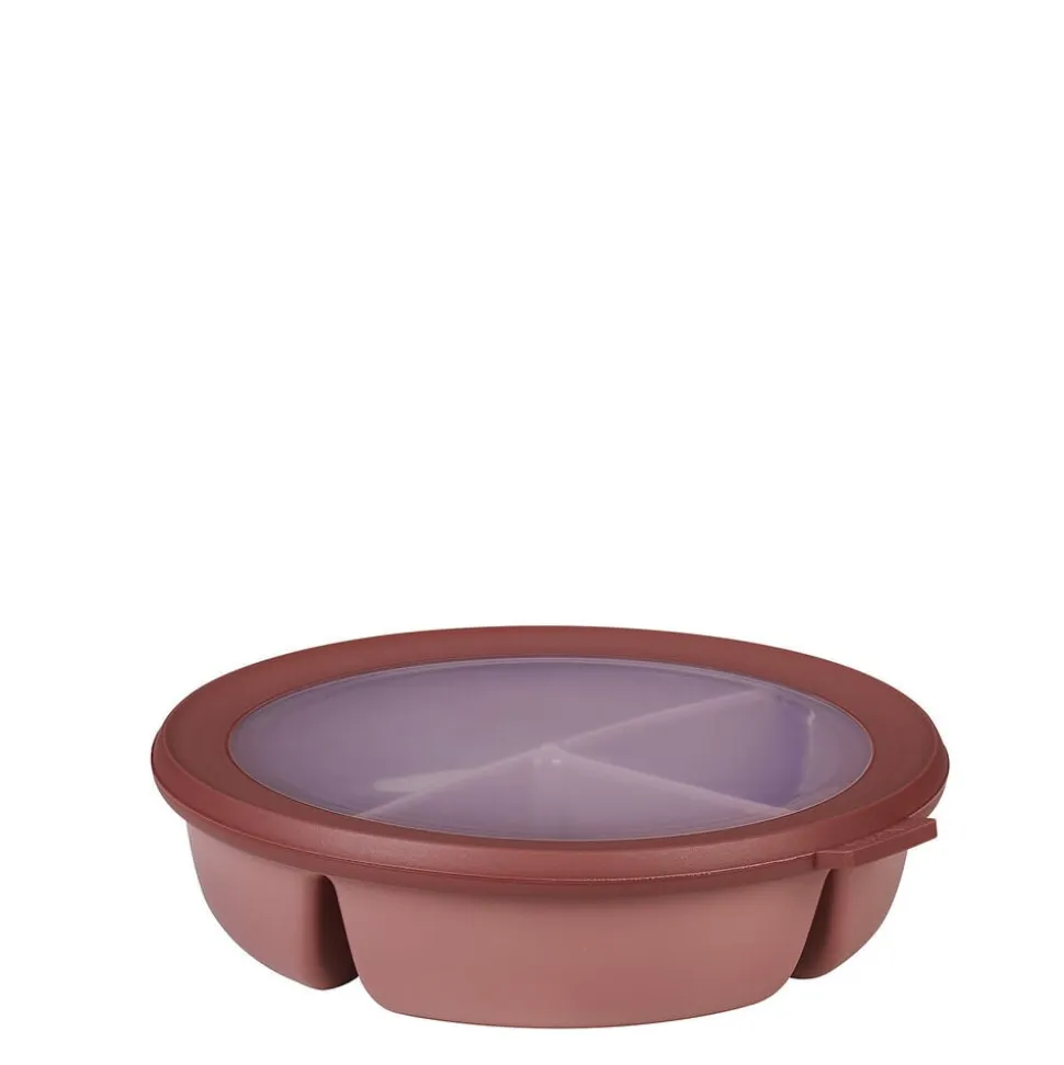 Mepal Cirqula trio-skålen med låg er inddelt i 3 rum på 250 ml + 250 ml + 500 ml og er ideel til at holde de forskellige elementer i dit måltid adskilt. Den holder maden frisk i længere tid og gør det nemt at tage frokosten med på farten. Skålen er velegnet til mikrobølgeovn, fryser, køleskab og opvaskemaskine.