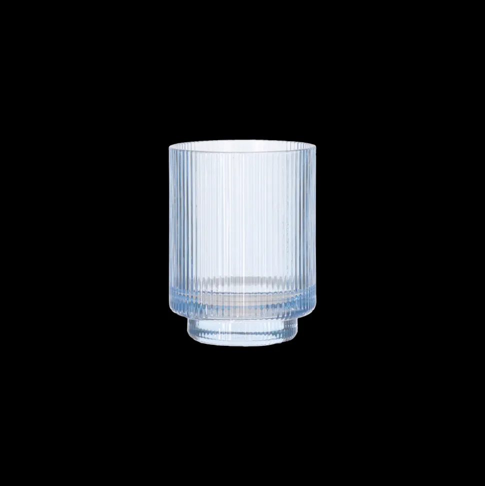 Clarity sæbedispenseren og tandbørsteholderen er lavet af riflet glas med et diskret bølgemønster. Den slanke silhuet giver et cool og elegant look.