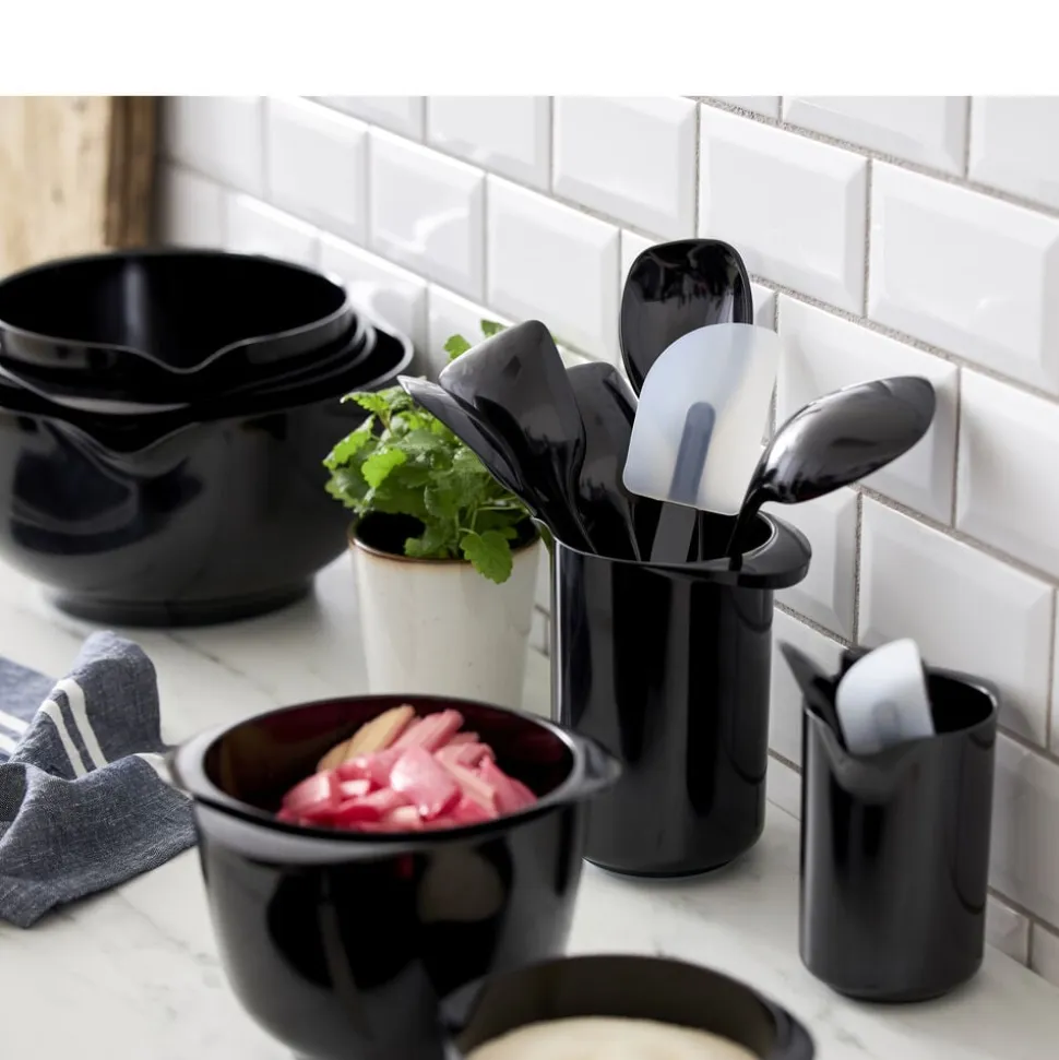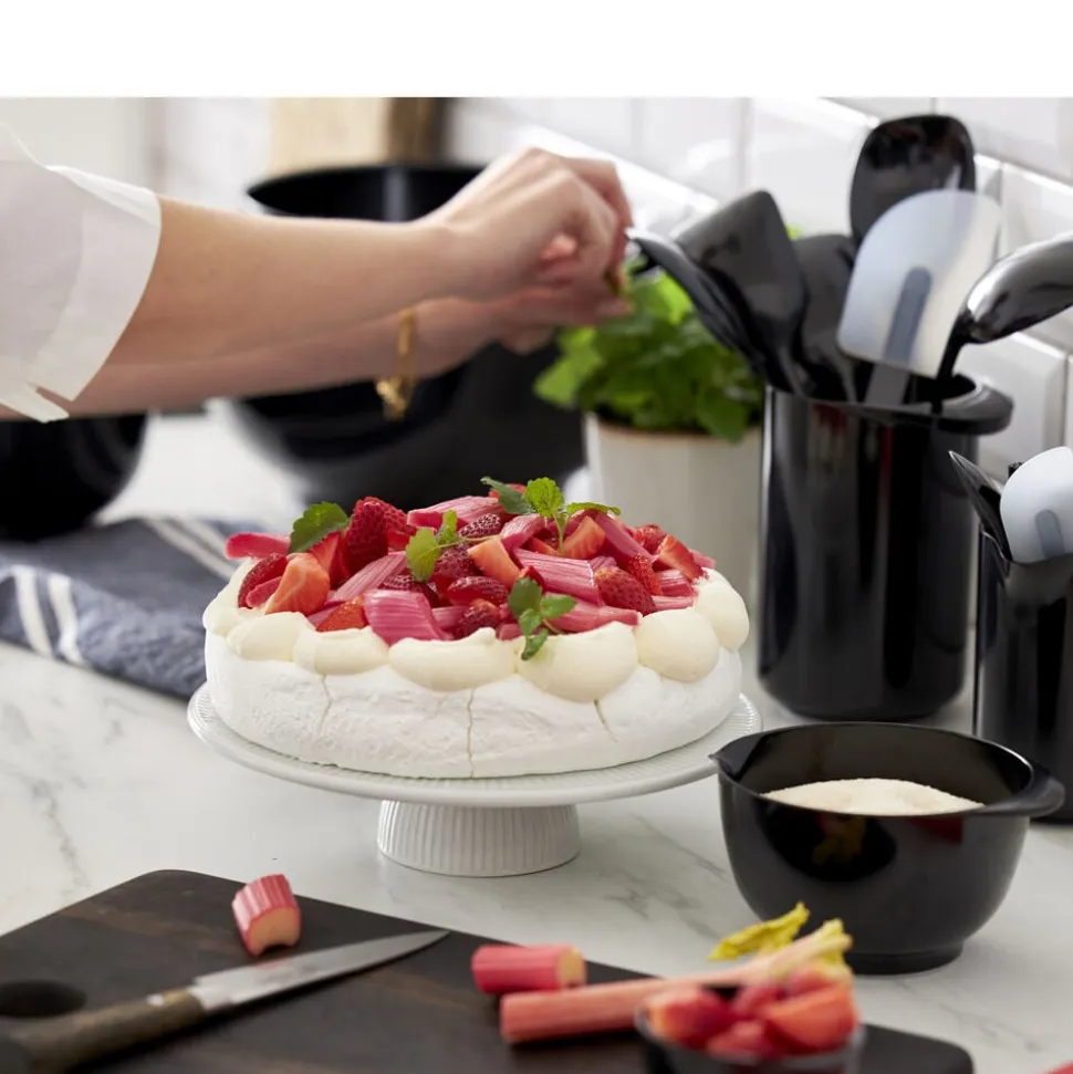 Rosti-sortimentet indeholder et væld af redskaber i forskellige størrelser, udformninger og farver. Grydeskeer i flere størrelser dækker behovet når der skal røres i gryder og skåle. Rosti-redskaberne fås i de samme farver som Margrethe-skålene, så det er altid muligt at matche skåle og redskaber – eller alternativt lave sin egen spændende farvekombination. Velegnet til opvaskemaskine, men kan ikke bruges i mikroovn og fryser. 5 års garanti.
