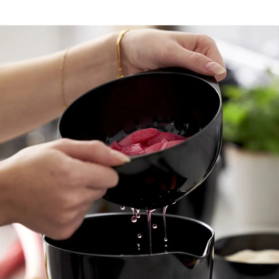 Rosti-dørslaget er perfekt sammen med Margrethe-skålen i samme størrelse. Vælg en matchende skål eller lav en spændende kombination ved at blande farverne. Fås også i en 1,5 liters udgave. Velegnet til opvaskemaskine, men kan ikke bruges i mikroovn og fryser. Holder formen selv ved opvarmning, hvilket er en stor fordel i forbindelse med madlavning. 5 års garanti.