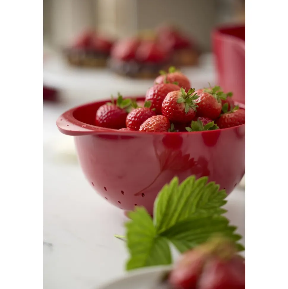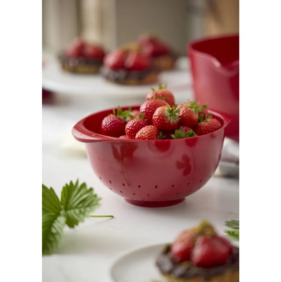 Rosti-dørslaget er perfekt sammen med Margrethe-skålen i samme størrelse. Vælg en matchende skål eller lav en spændende kombination ved at blande farverne. Fås også i en 4 liters udgave. Velegnet til opvaskemaskine, men kan ikke bruges i mikroovn og fryser. Holder formen selv ved opvarmning, hvilket er en stor fordel i forbindelse med madlavning. 5 års garanti.