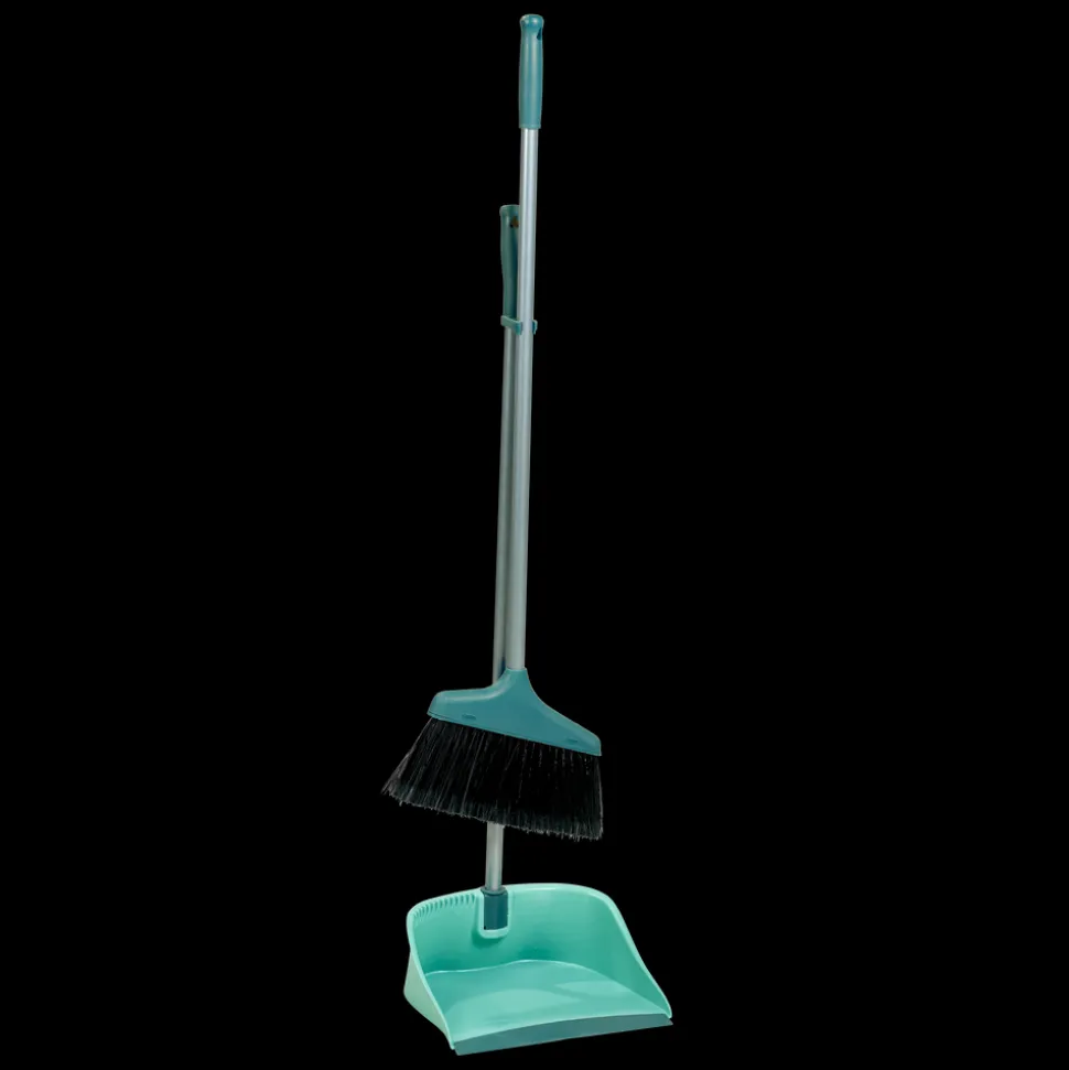 Klassisk fejesæt med aluskaft og syntetiske børster. Enderne af børsterne er splittede, hvilket gør fejning langt mere effektiv end med en traditionel kost. Fejebakken har et langt skaft og en gummiliste, som sikrer, at snavs og støv nemt fejes op. Efter brug kan fejebakken foldes op mod skaftet, så sættet fylder minimalt og er nemt at opbevare i et skab eller et hjørne.