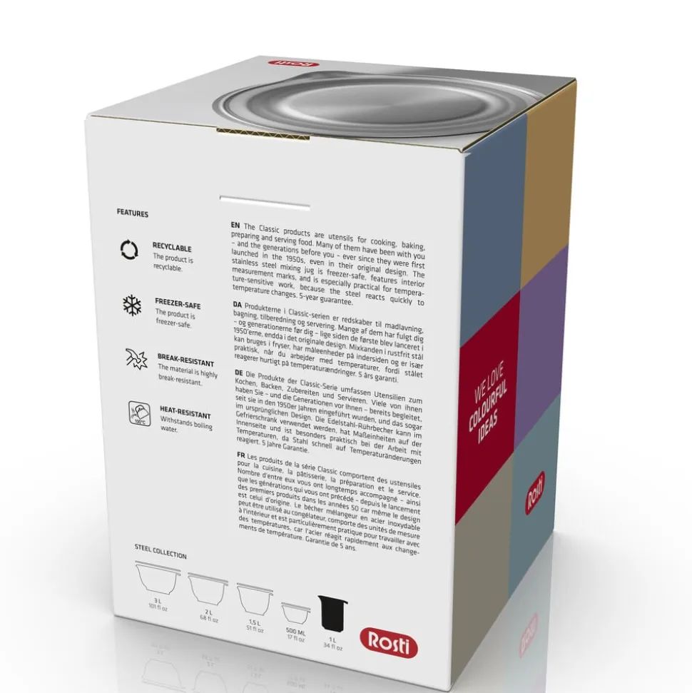 Kan vaskes i opvaskemaskine og bruges i fryser, men ikke i mikroovn. 5 års garanti.