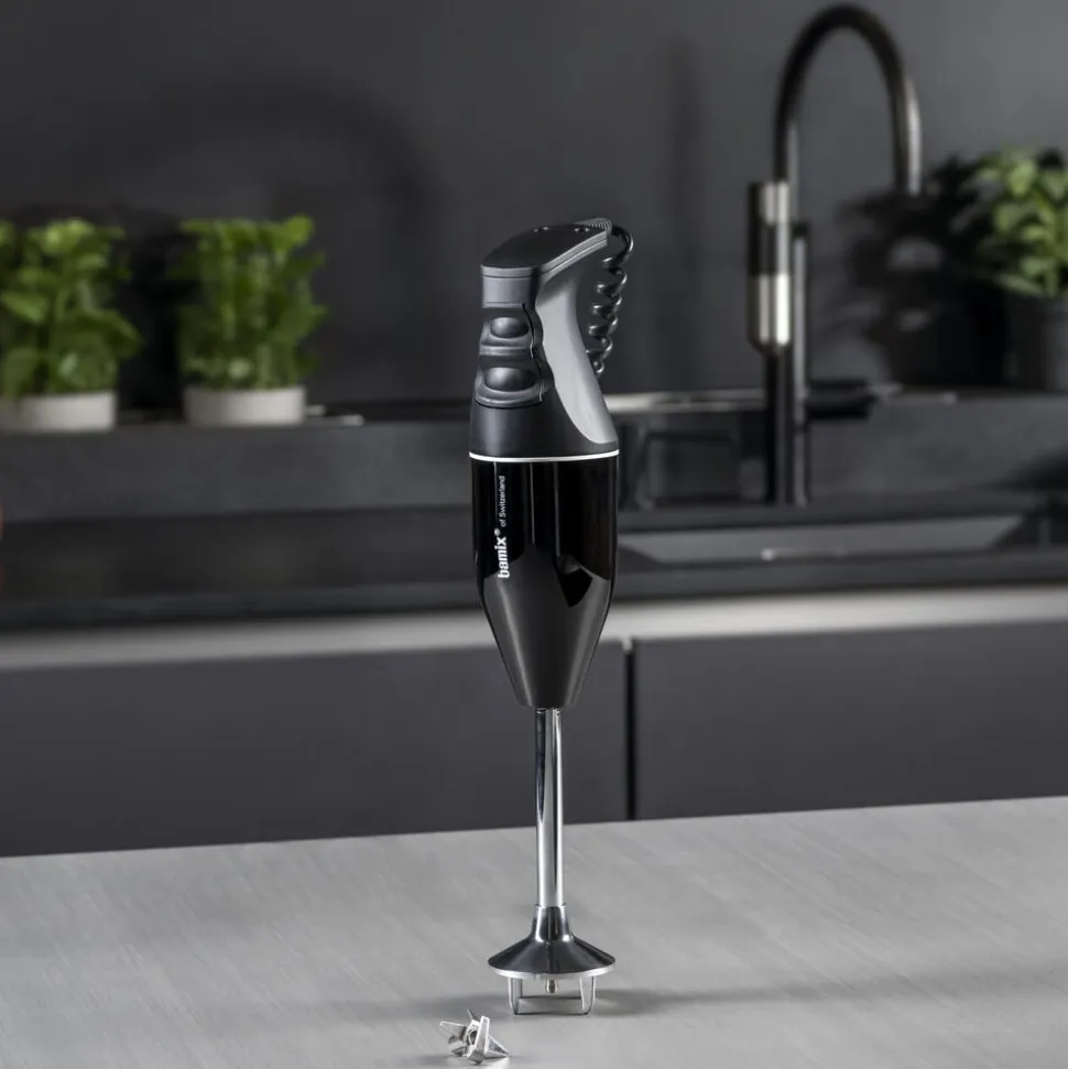 bamix® Classic-stavblender med en kraftig 140 watt motor, der sikrer pålidelig hjælp til selv de hårdeste opgaver i køkkenet. Stavblenderen har to hastighedsindstillinger og en praktisk ledning, der giver masser af fleksibilitet. Til produktet medfølger en multifunktionskniv og en instruktionsmanual. Livstidsgaranti på motor.