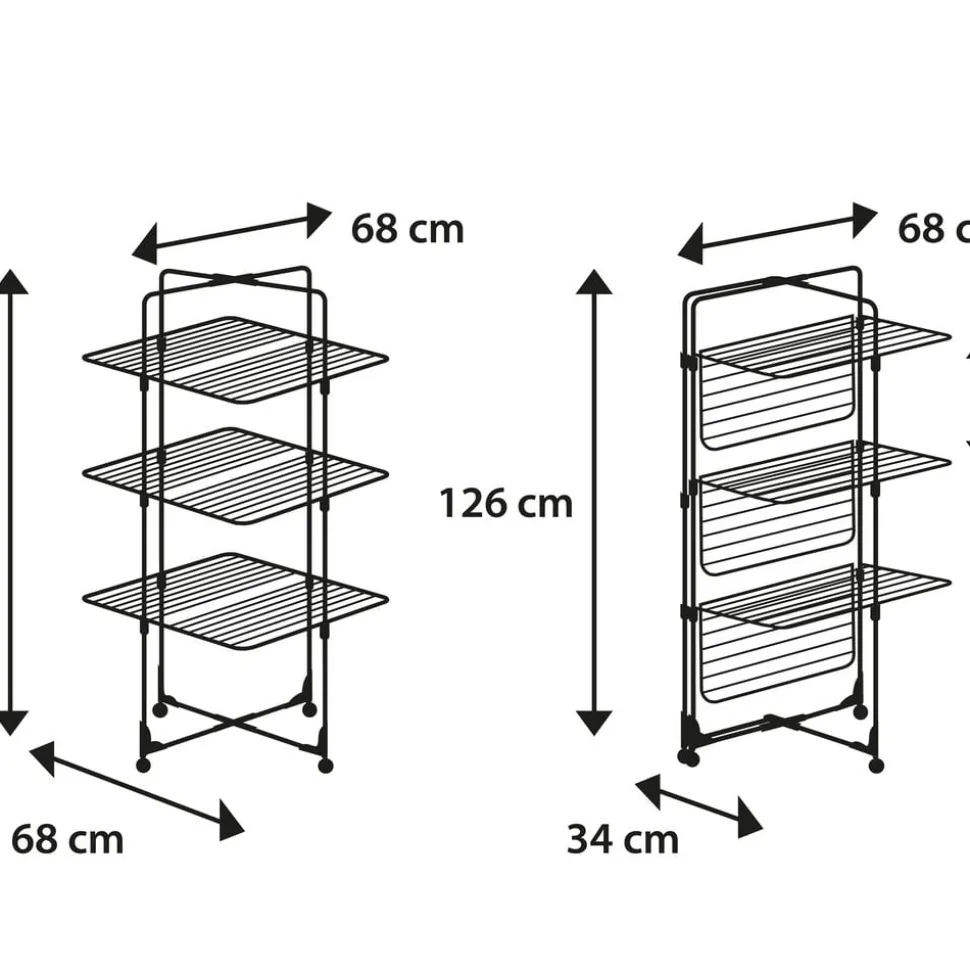 Hvert niveau kan foldes sammen, således man kan tørre f.eks. bukser.