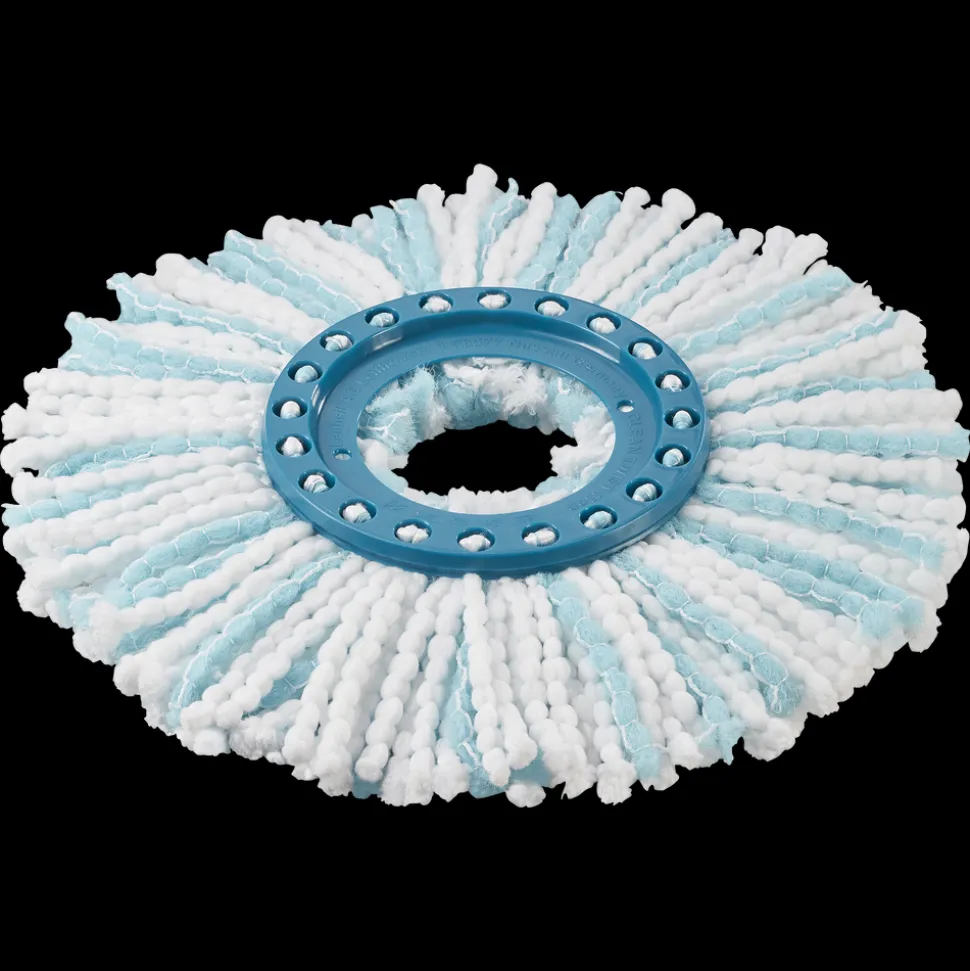 Rundt moppehoved i mikroduo, der gør rengøringen ekstra effektiv. De særlige turkise børster fjerner selv det mest genstridige snavs. Moppehovedet kan vaskes ved 60 °C.