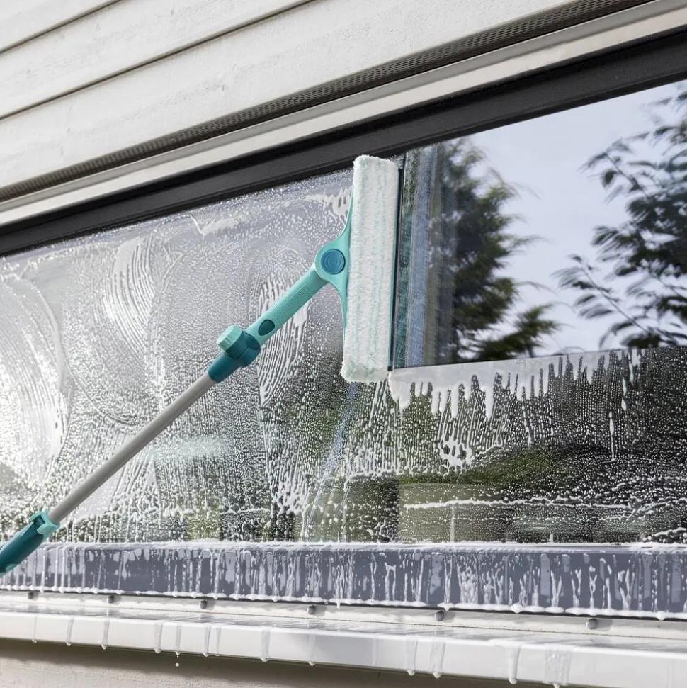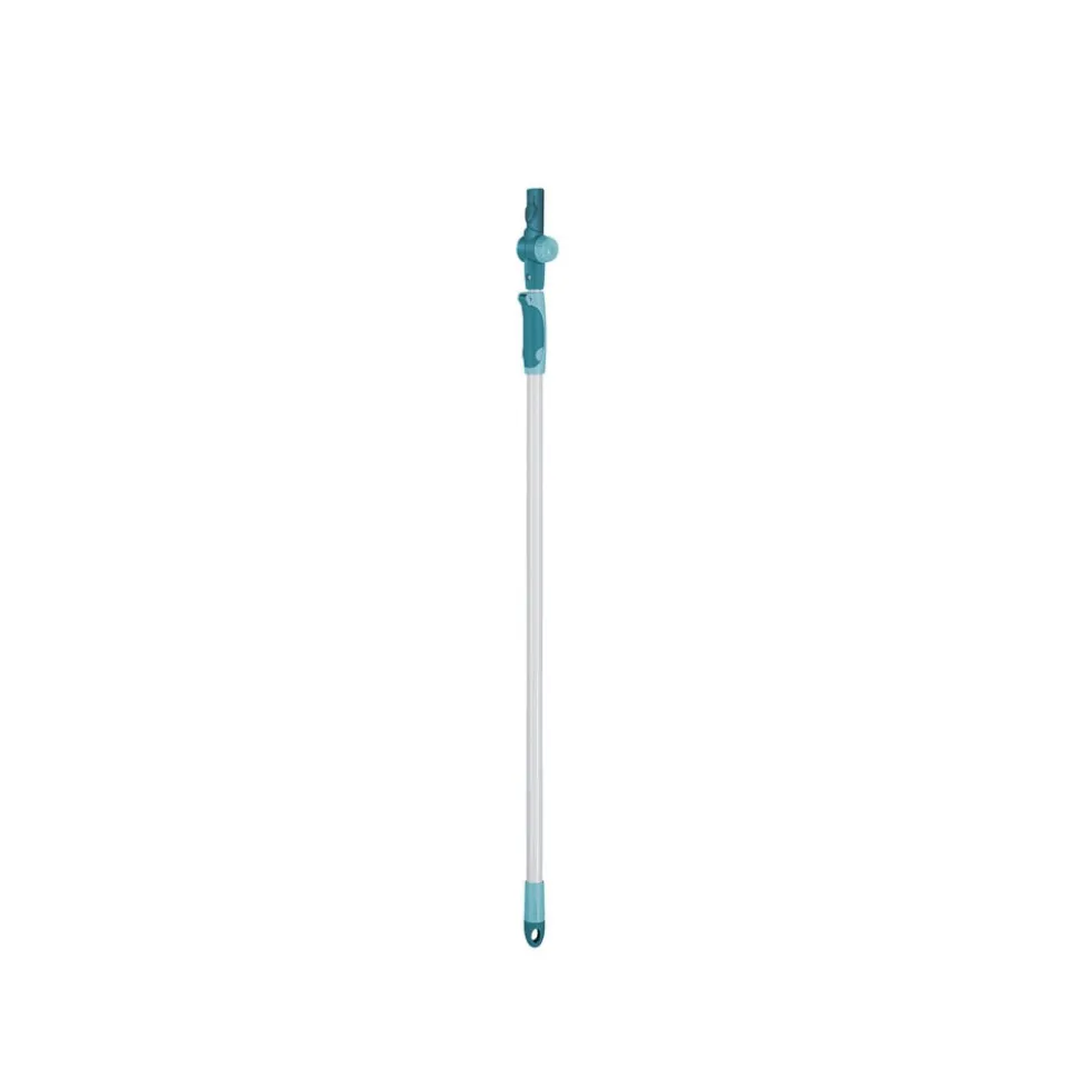 Teleskopstang med drejeled og justerbar arbejdslængde fra 110 til 190 cm. Stangen er en del af Leifheits Click-system og kan bruges med en række Click-kompatible rengøringsredskaber. Den skridsikre top sikrer, at stangen kan stilles op ad væggen uden at glide eller vælte.