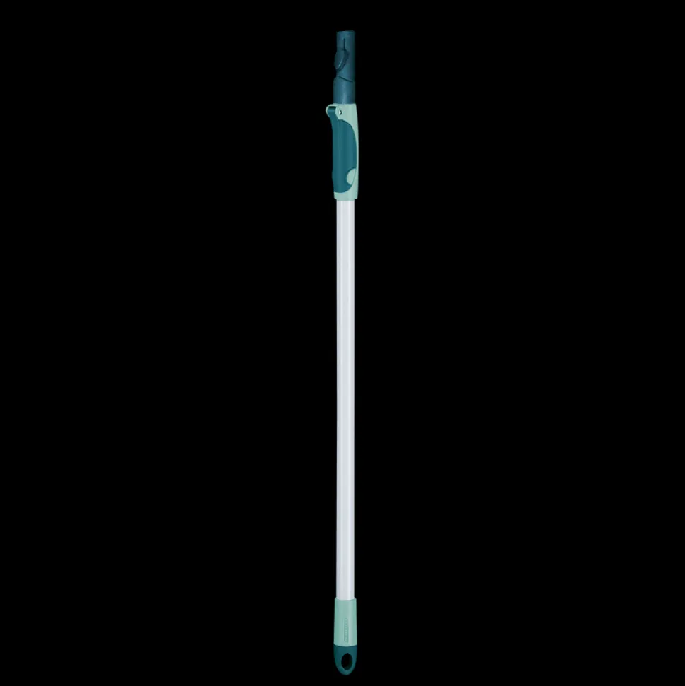 Teleskopstang med justerbar arbejdslængde fra 80 til 135 cm, som giver god kontrol og rækkevidde ved gulvvask. Stangen er en del af Leifheits Click-system og kan bruges med en række Click-kompatible rengøringsredskaber. Den skridsikre top sikrer, at stangen kan stilles op ad væggen uden at glide eller vælte.