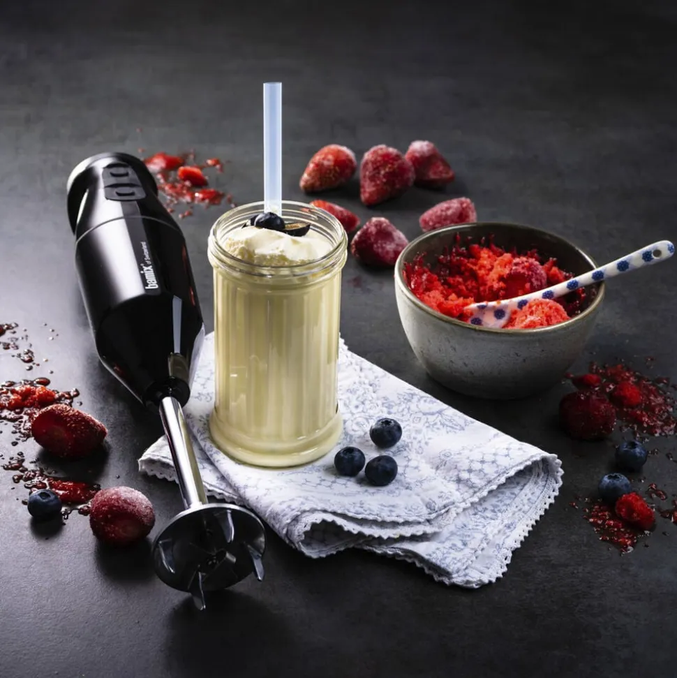 Med din bamix® Cordless og dens tilbehør kan du piske, purere, røre, blende, mikse, mose, knuse og hakke.