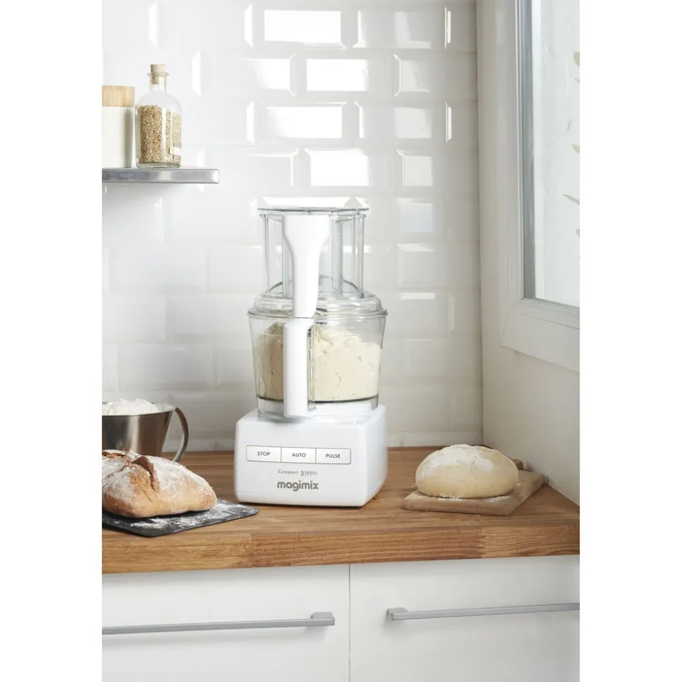 Strømlinet Magimix foodprocessor i høj kvalitet med mange funktioner, der er enkel at betjene ved hjælp af tre knapper. Tre pladsbesparende skåle gør tilberedningen nem og praktisk.