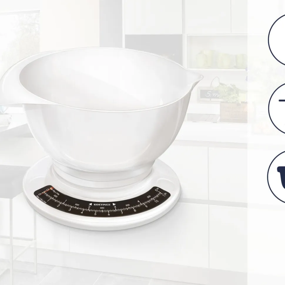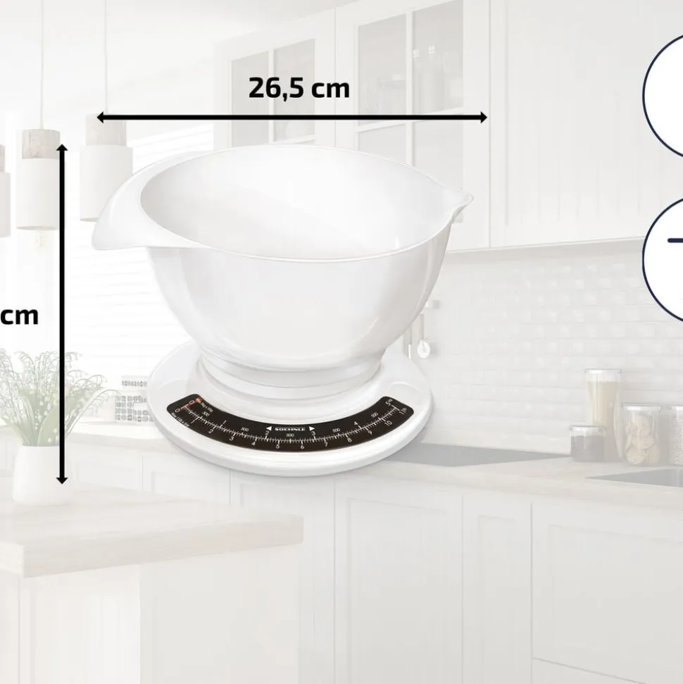 Culina Pro er en klassisk, analog køkkenvægt, der gør det nemt at veje og blande ingredienser i én arbejdsgang. Den store røreskål rummer næsten 2,5 liter og er udstyret med både hank og hældetud. Vægten er robust, nem at rengøre og ideel til daglig brug.